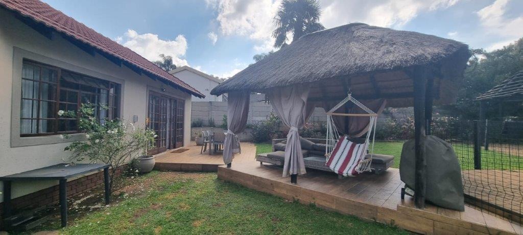 The exterior is designed for enjoyment. Step outside to discover a private swimming pool, perfect for cooling off. A charming lapa and a spacious patio create an excellent environment for outdoor dining or unwinding. The established garden provides a serene backdrop, while paving ensures practical access. Two garages offer secure parking and storage. Burglar bars provide added security, and pets are permitted, making it a truly family-friendly environment.