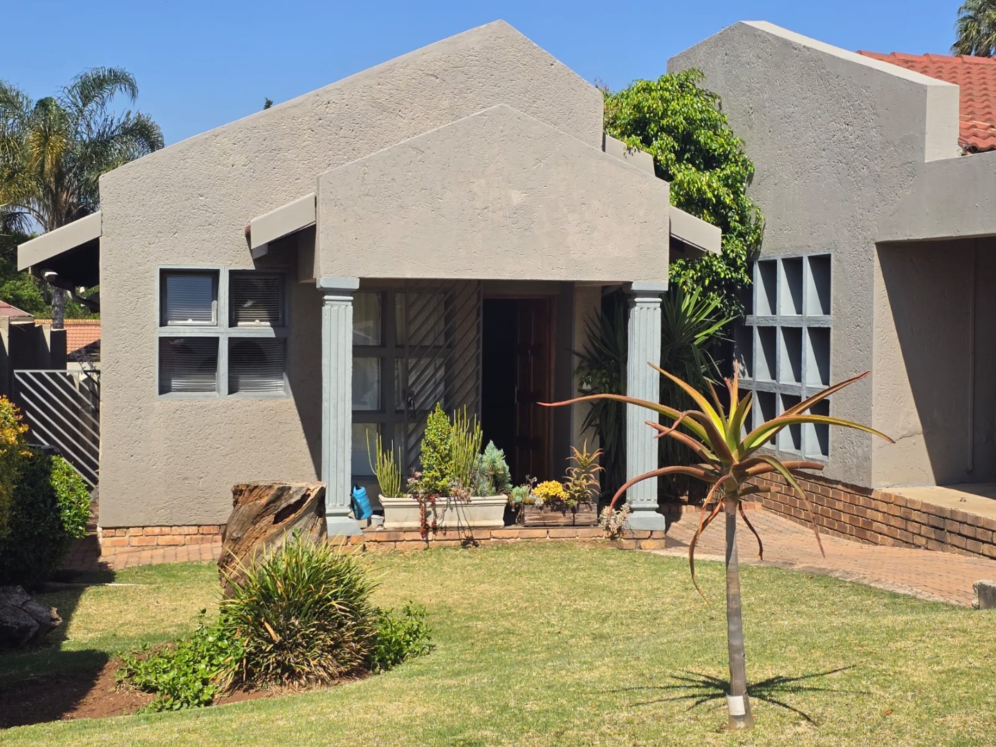 Discover this charming 3-bedroom, 2-bathroom residence nestled within the secure Villa De KAT complex in Van Riebeeck Park, Kempton Park. This property offers a blend of modern living and practical features, ideal for families or professionals seeking comfort and security. The contemporary grey facade and well-maintained front lawn provide excellent kerb appeal, setting a welcoming tone.