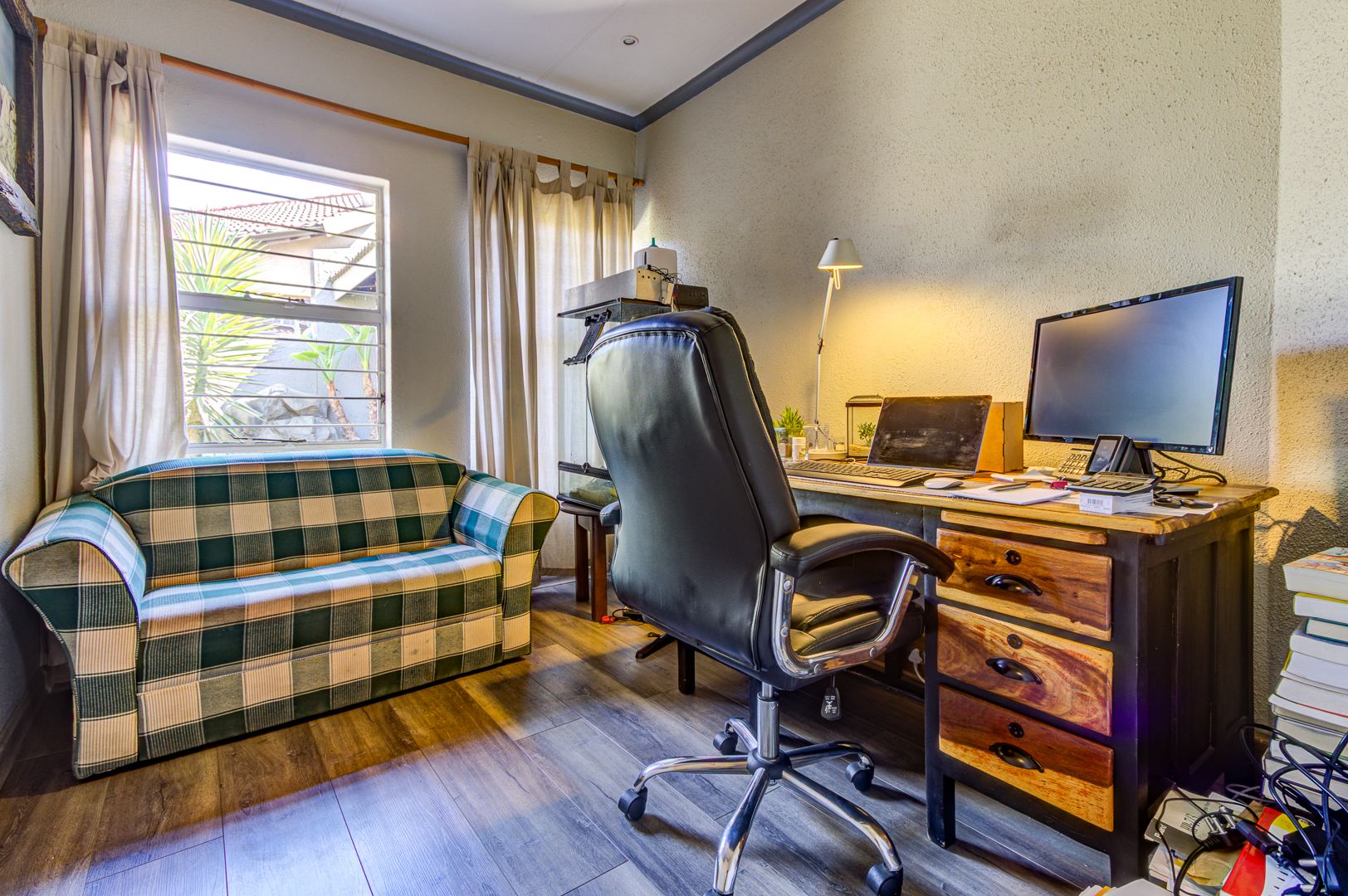 Set on a generous 857 sqm erf, the property includes a substantial covered carport providing parking for at least two vehicles. The secure environment is further enhanced by an automated gate and electric fencing, offering peace of mind within this cul-de-sac location. Van Riebeeck Park is a well-established suburb in Kempton Park, known for its community feel and convenient access to local amenities and major routes in Gauteng, South Africa.