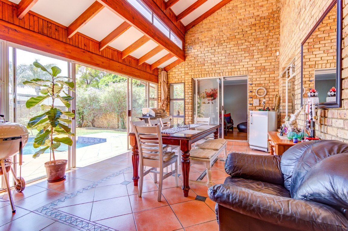 Exceptionally spacious with sliding doors leading to the garden and entertainment area. Features tiled and wooden flooring that enhances the room’s charm and comfort.