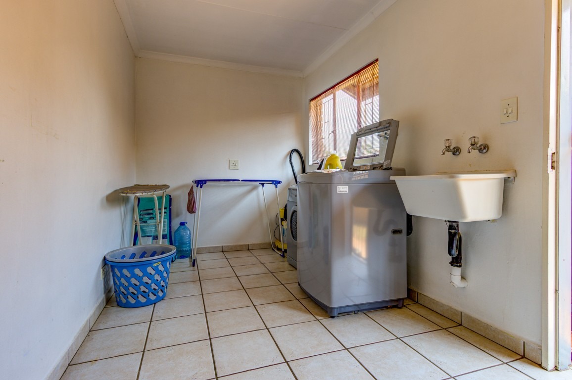 Combined with the kitchen and laundry, featuring a double sink and space for a dishwasher.