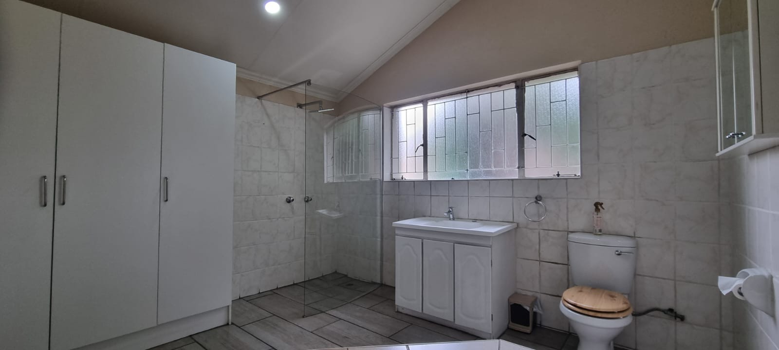 This spacious home offers 4 tiled bedrooms with built-in cupboards, including a large dressing room for added convenience. There are 2 fully tiled bathrooms, including a main en-suite featuring a corner bath and separate shower.