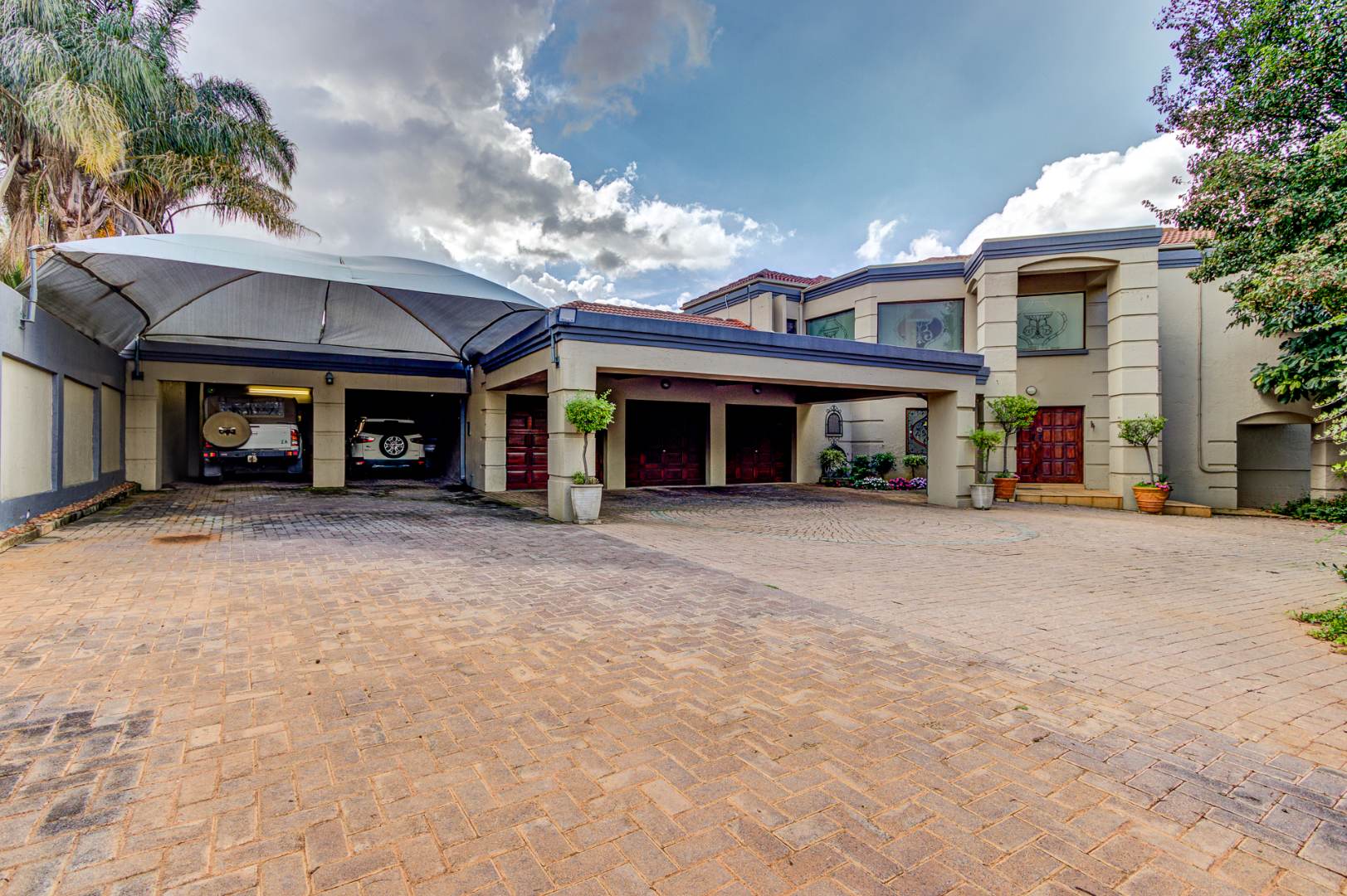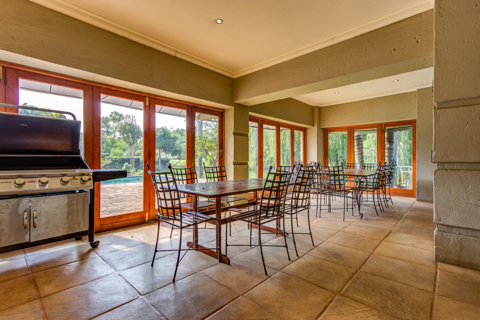 Step outside to a private oasis designed for enjoyment. The sparkling swimming pool is complemented by an established garden, offering a serene backdrop for outdoor activities. Practical features include extensive paving, a dedicated laundry area, and pet-friendly provisions. Four secure garages and an additional seven parking spaces cater to multiple vehicles. The self-contained flatlet presents an excellent opportunity for extended family living or potential rental income.