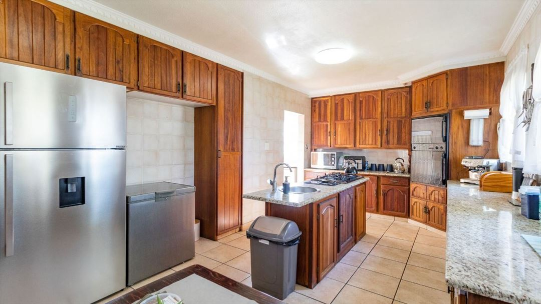 This charming five-bedroom home offers a warm and comfortable atmosphere, perfect for family living. It features two neat bathrooms, a practical kitchen, and a welcoming dining area ideal for shared meals. The home includes two lounges and a separate family room, providing ample space for relaxation and gatherings. Outside, the property is designed for enjoyable outdoor living, with a braai area, a covered patio, and a sparkling swimming pool for family fun and entertaining. Two garages and three carports offer plenty of parking space, while the staff quarters add extra convenience. With its classic style and homely feel, this property is well-suited for those who appreciate space, comfort, and traditional charm
