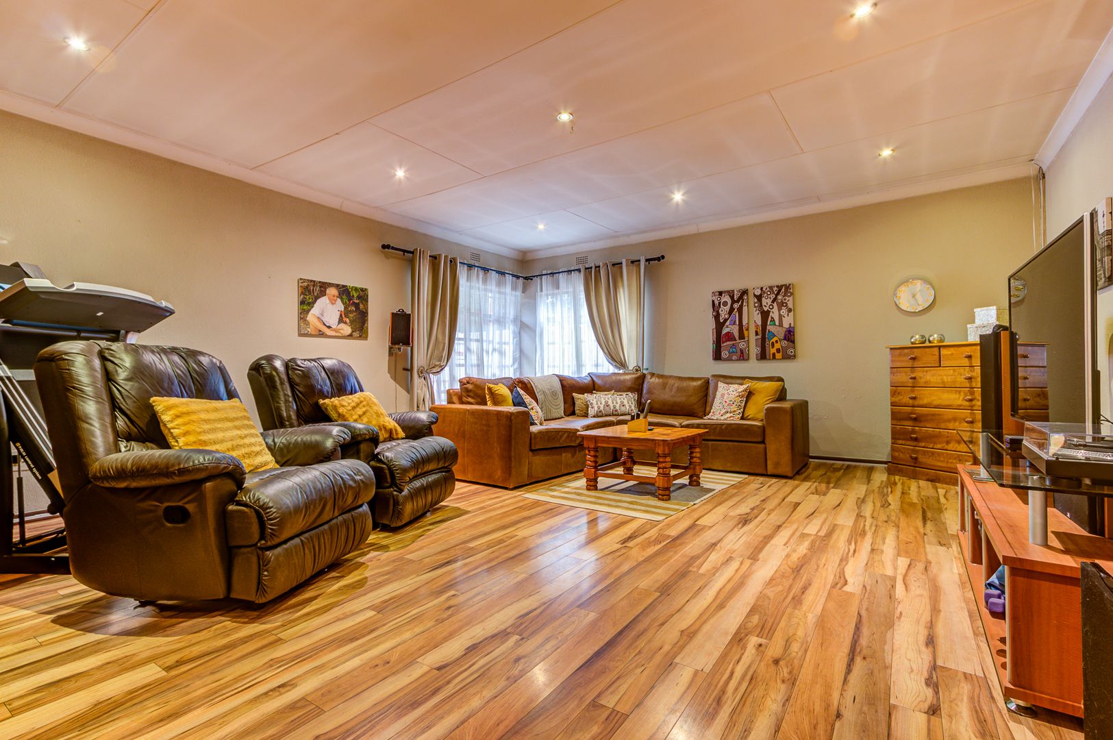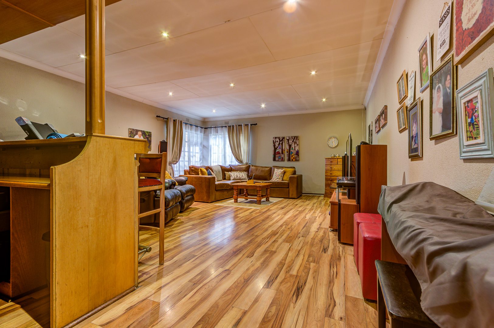 A second family / entertainment room with built-in bar room provides even more space to relax or entertain guests, while laminated flooring and additional storage areas ensure practicality for everyday living.