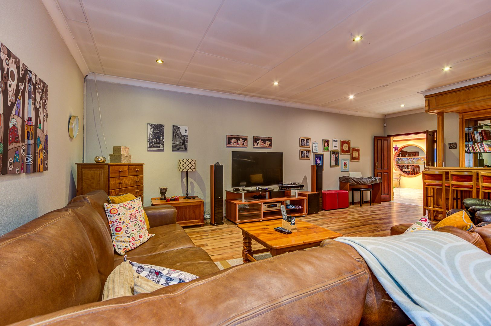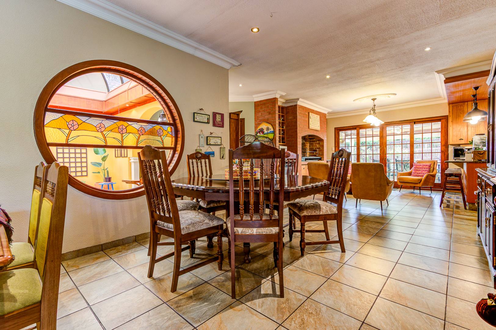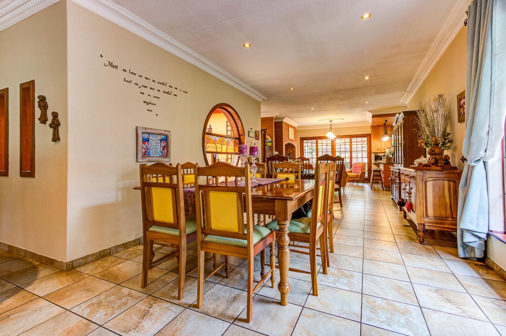 designed for effortless family living and entertaining. The home features a large open-plan family room and dining area, complemented by an indoor braai and built-in bar, creating the perfect setting for gatherings throughout the year.