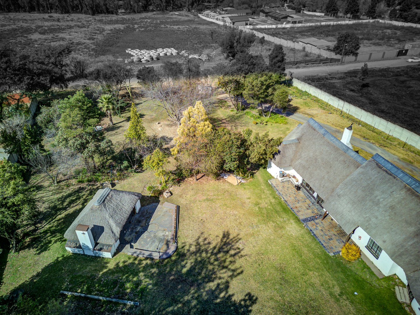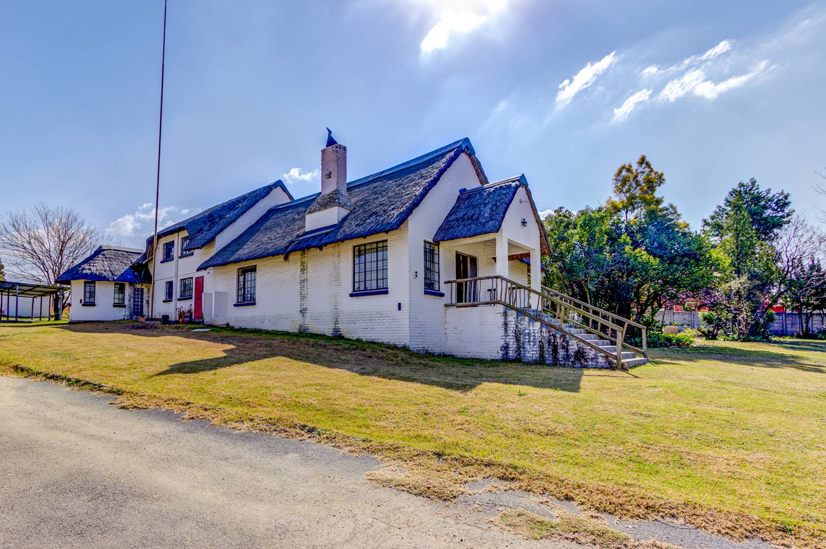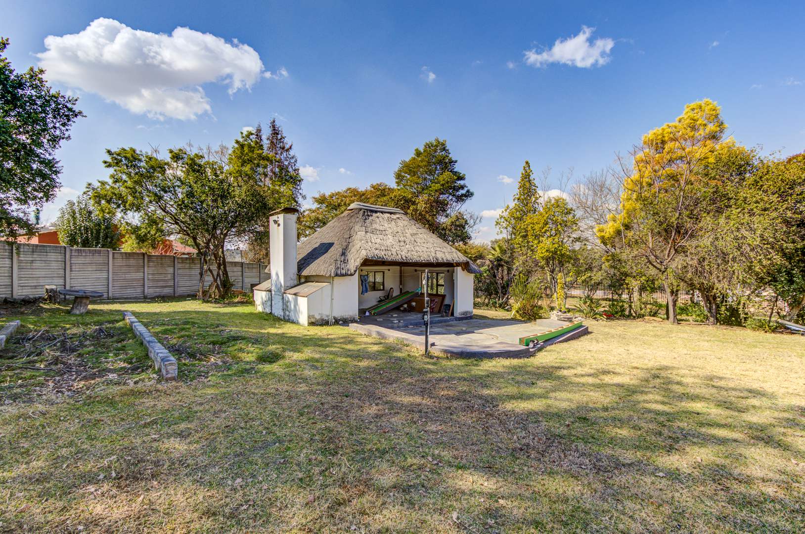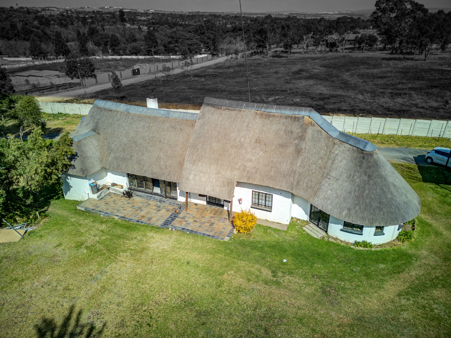 Discover a unique opportunity in President Park, Midrand, South Africa, with this property spanning 8566 square metres. The distinctive main residence features a charming thatched roof, offering a blend of character and potential. This large, fenced plot provides ample green space, mature trees, and a semi-rural feel, while remaining conveniently located.