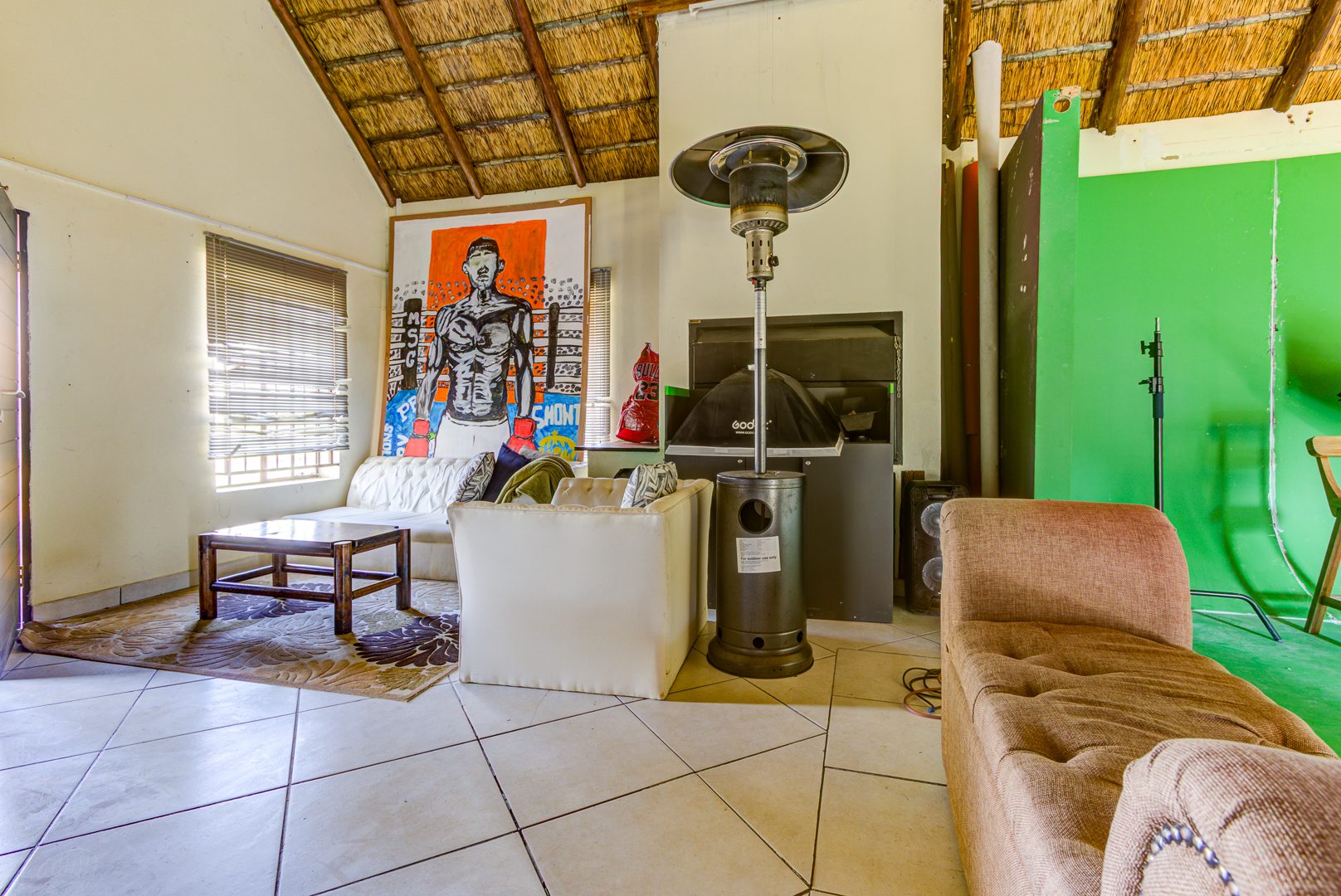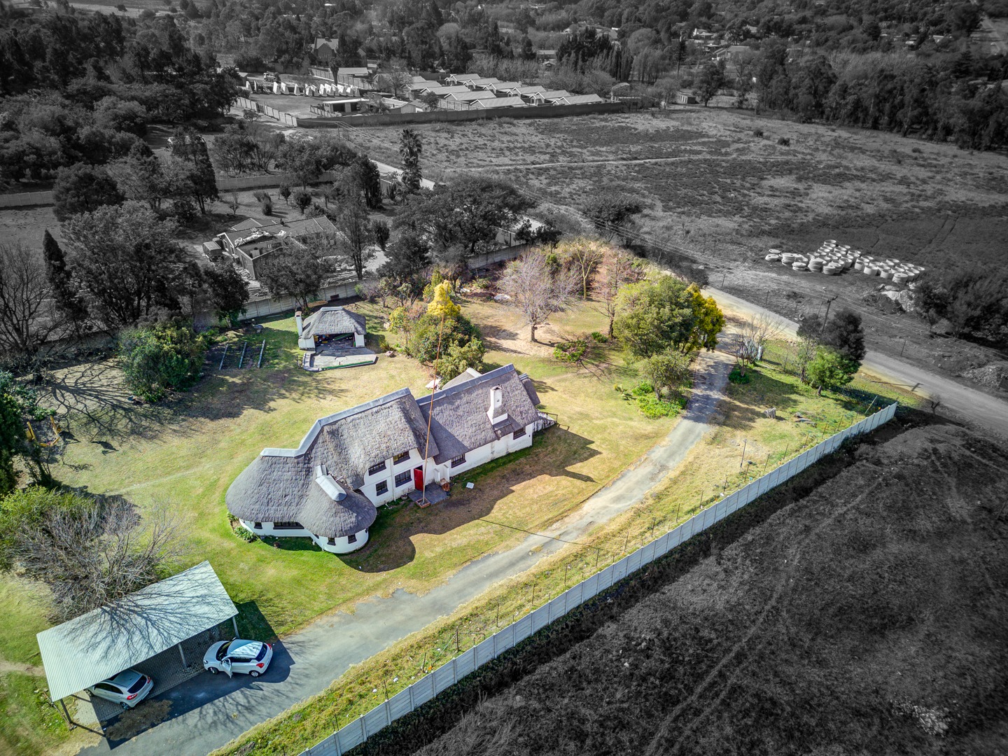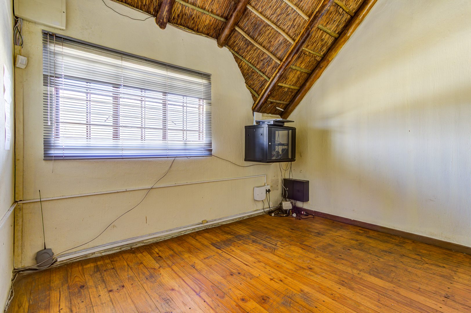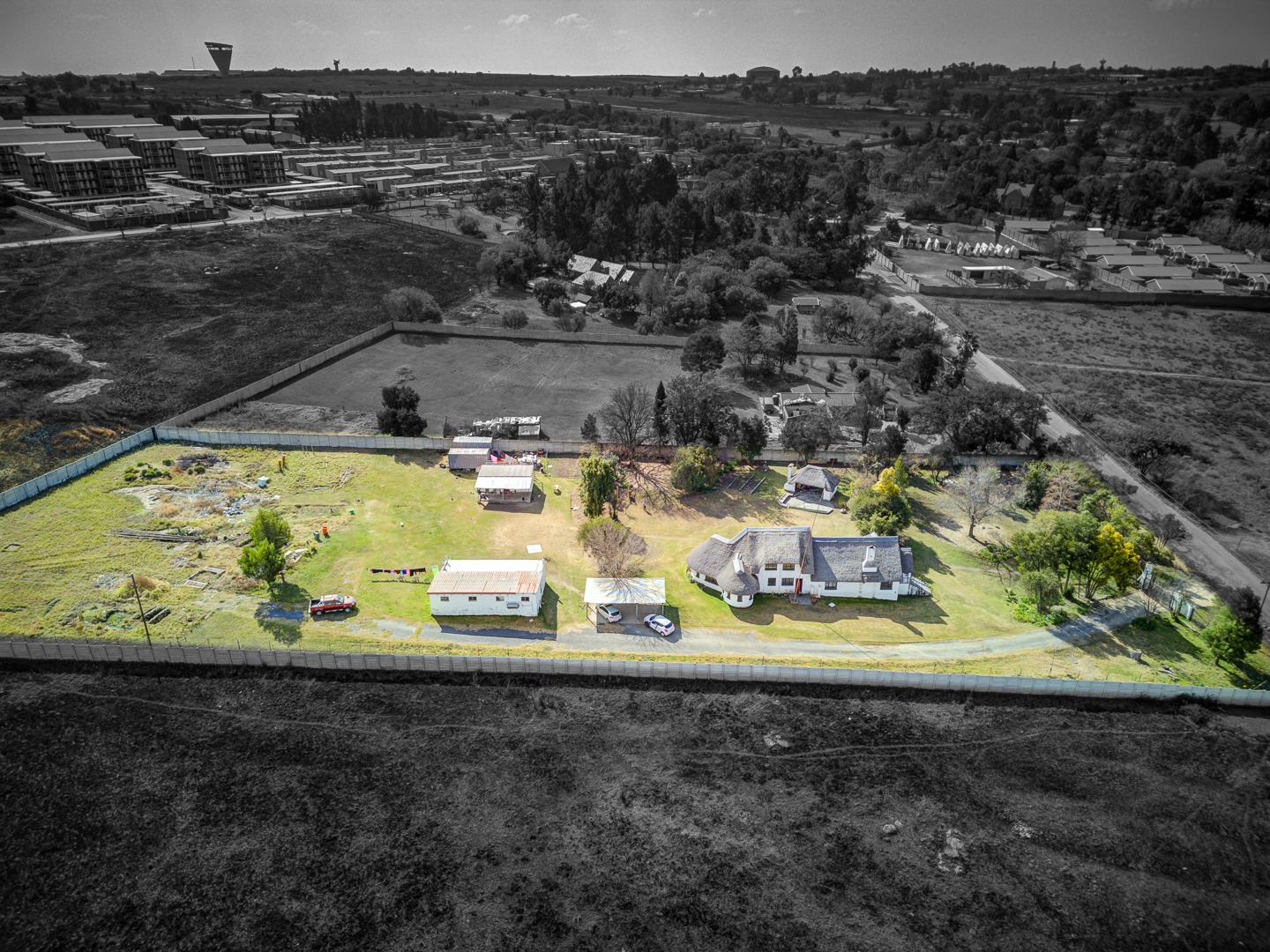 Discover a unique opportunity in President Park, Midrand, South Africa, with this property spanning 8566 square metres. The distinctive main residence features a charming thatched roof, offering a blend of character and potential. This large, fenced plot provides ample green space, mature trees, and a semi-rural feel, while remaining conveniently located.