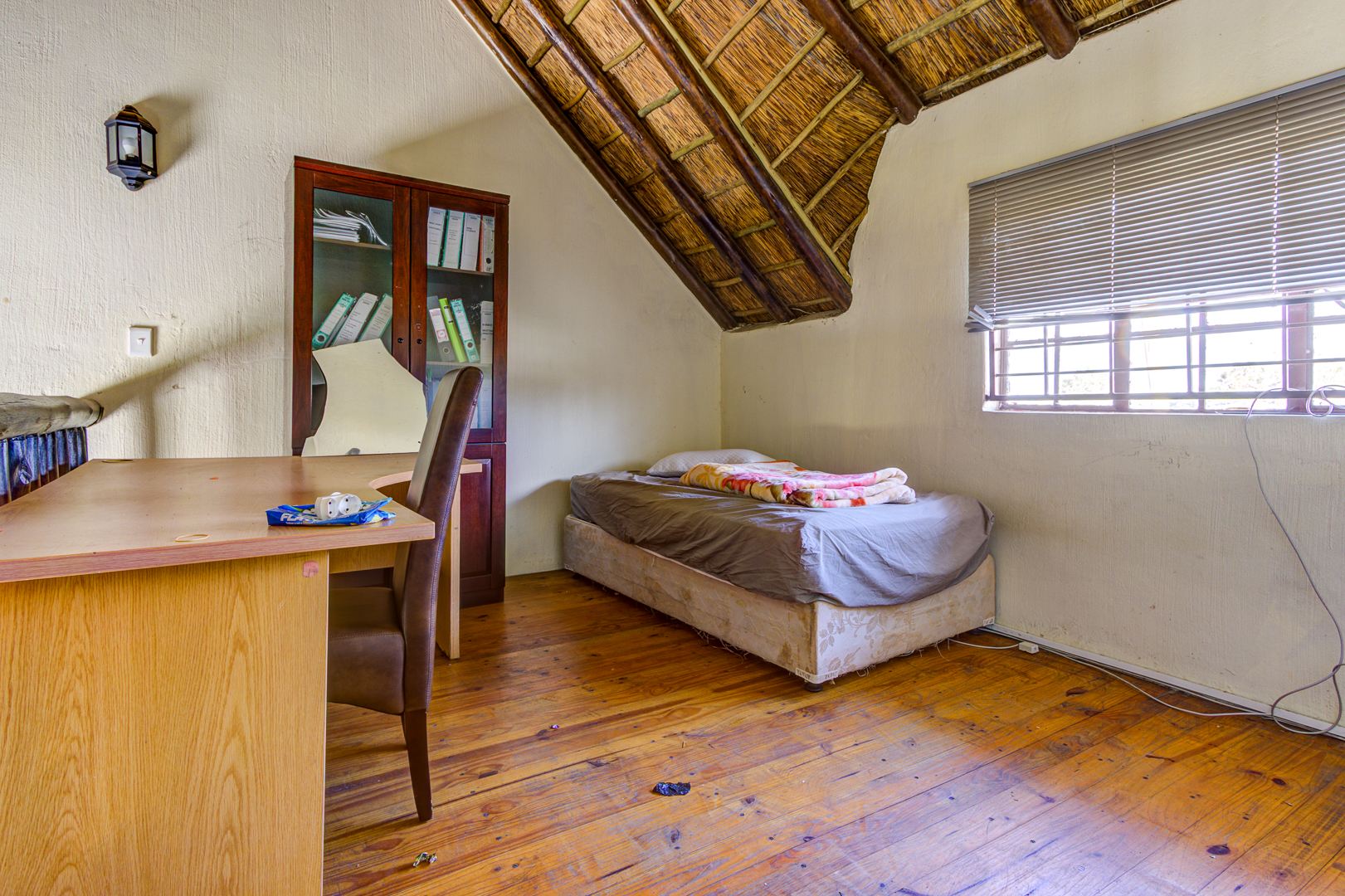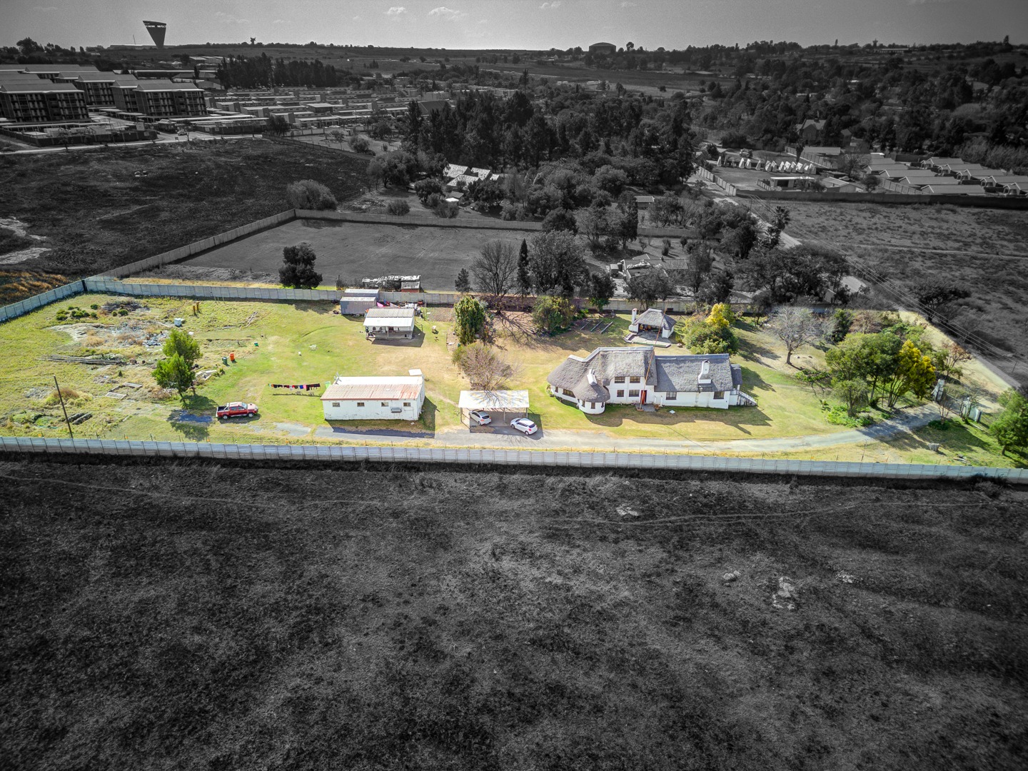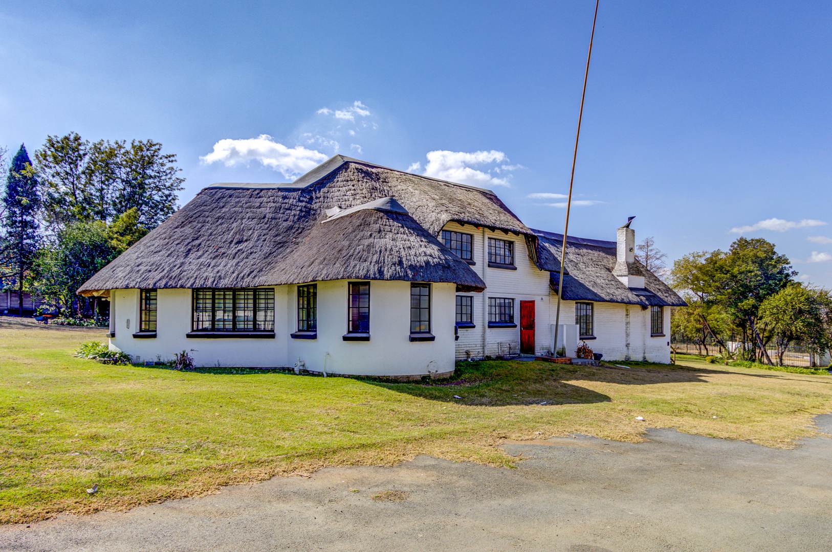 Discover a unique opportunity in President Park, Midrand, South Africa, with this property spanning 8566 square metres. The distinctive main residence features a charming thatched roof, offering a blend of character and potential. This large, fenced plot provides ample green space, mature trees, and a semi-rural feel, while remaining conveniently located.