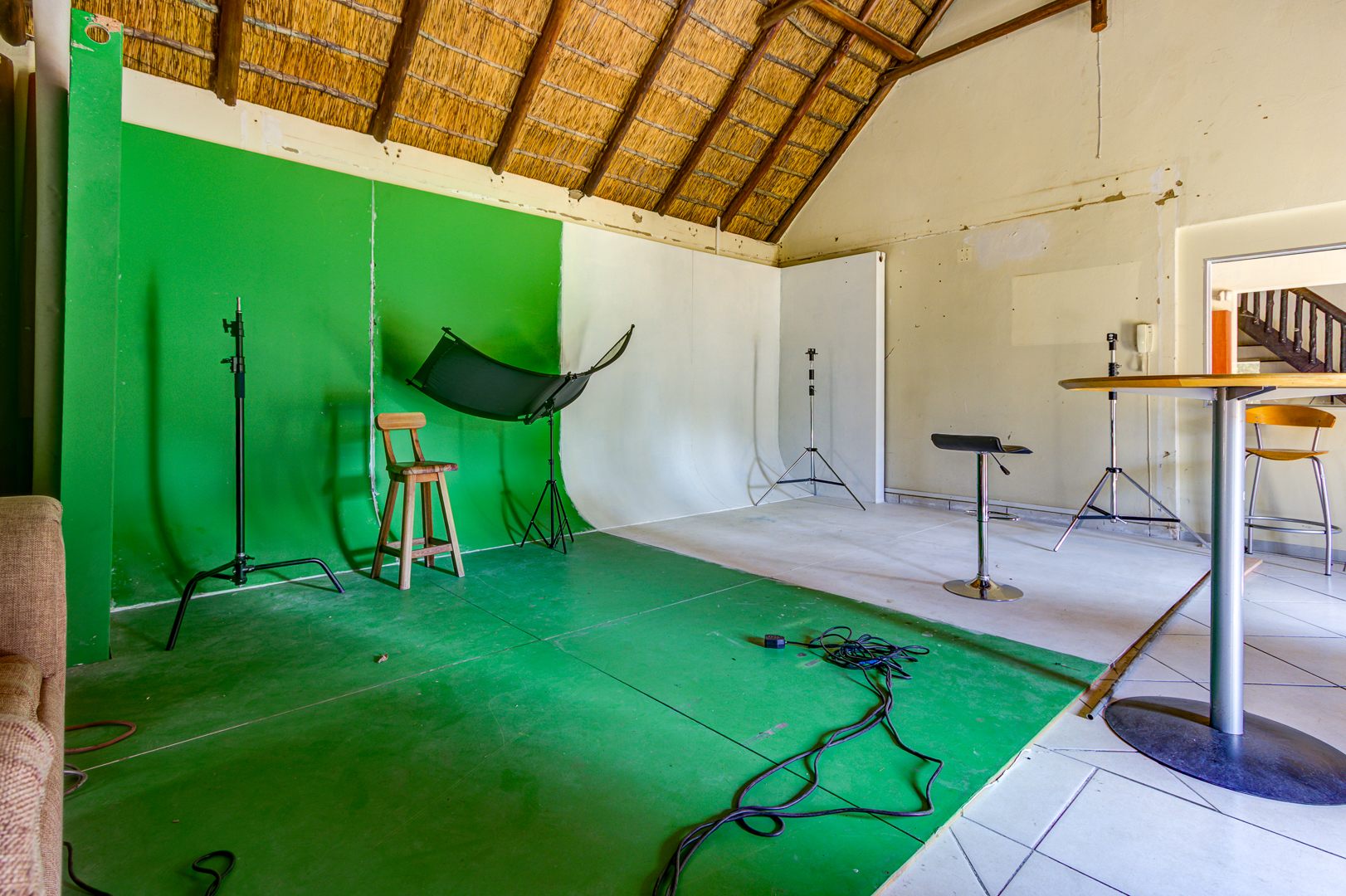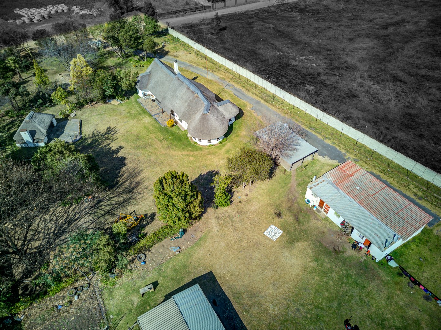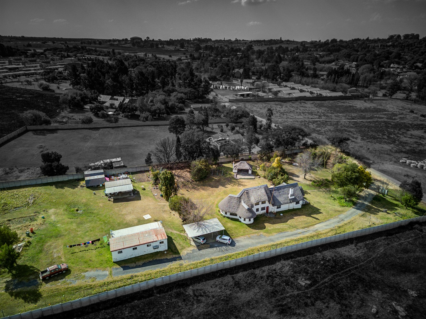 Discover a unique opportunity in President Park, Midrand, South Africa, with this property spanning 8566 square metres. The distinctive main residence features a charming thatched roof, offering a blend of character and potential. This large, fenced plot provides ample green space, mature trees, and a semi-rural feel, while remaining conveniently located.