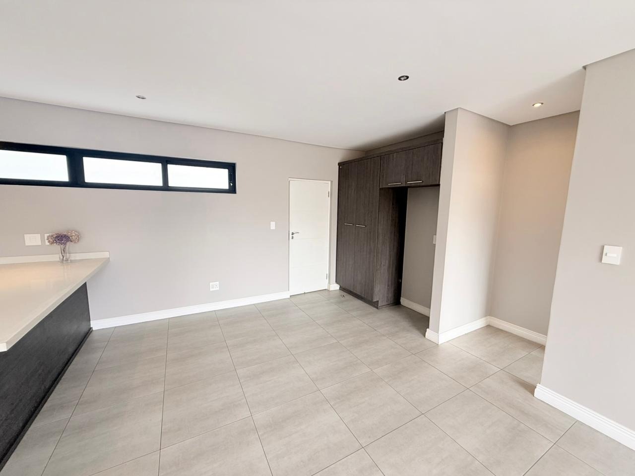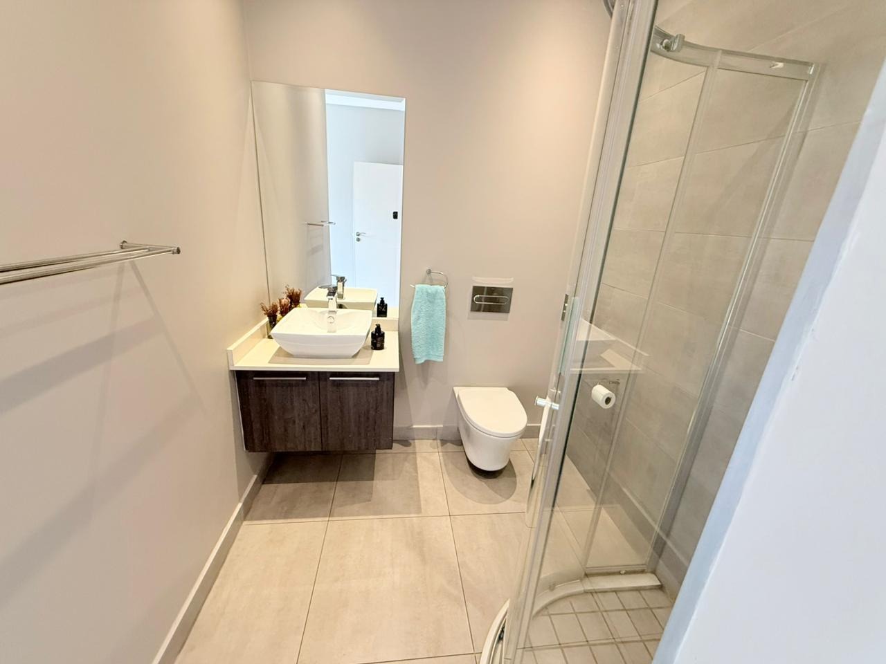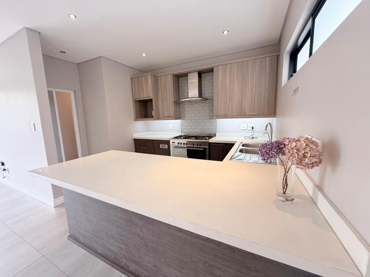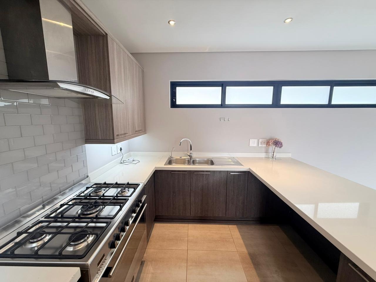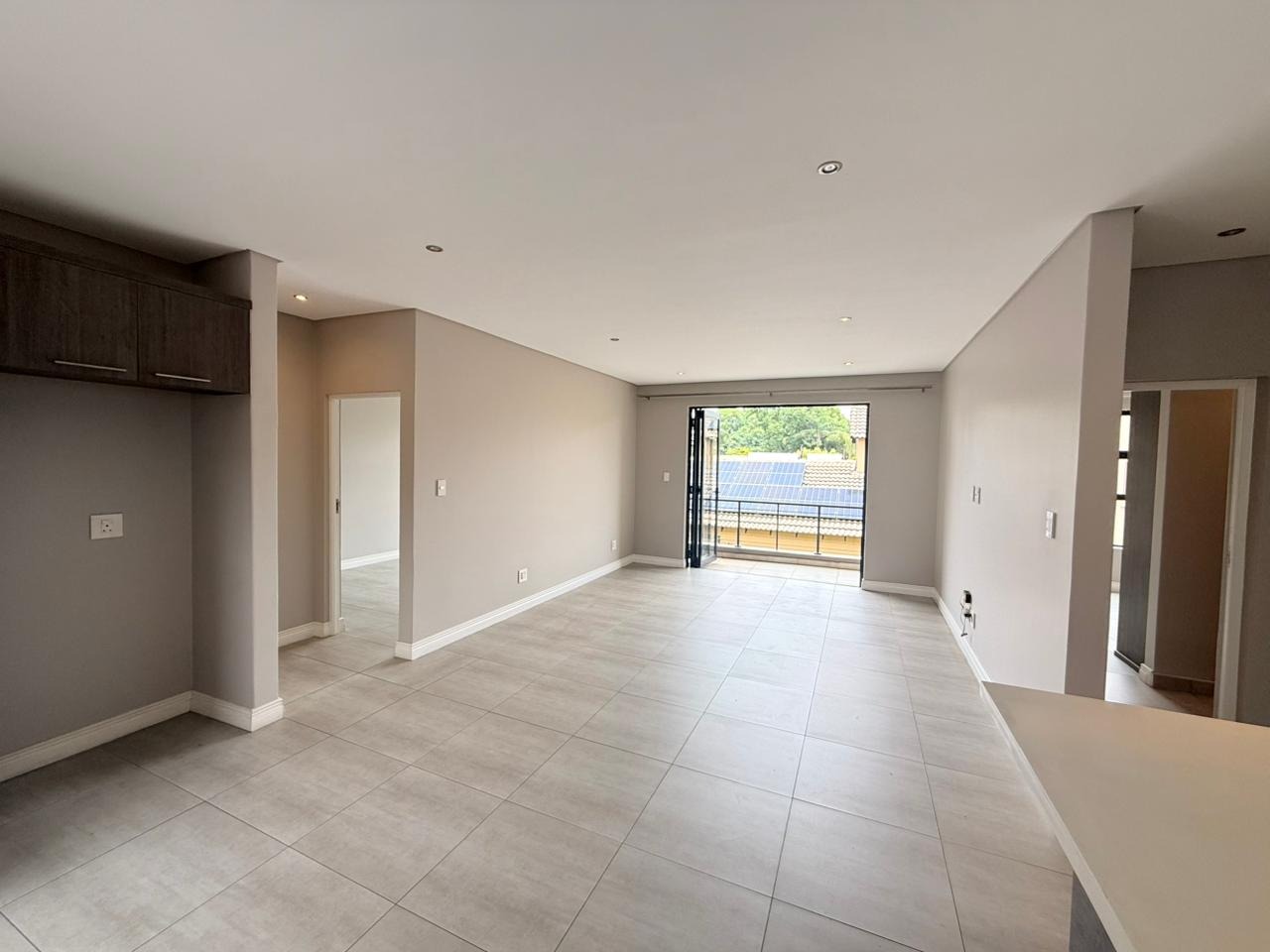 The apartment features a large open-plan kitchen, lounge, and dining area, creating a seamless and airy living space ideal for modern living. The kitchen is well-appointed with a gas stovetop, (ELBA appliance) granite countertops, ample cupboard space, a pantry cupboard, and a water filtration system, offering both functionality and style.