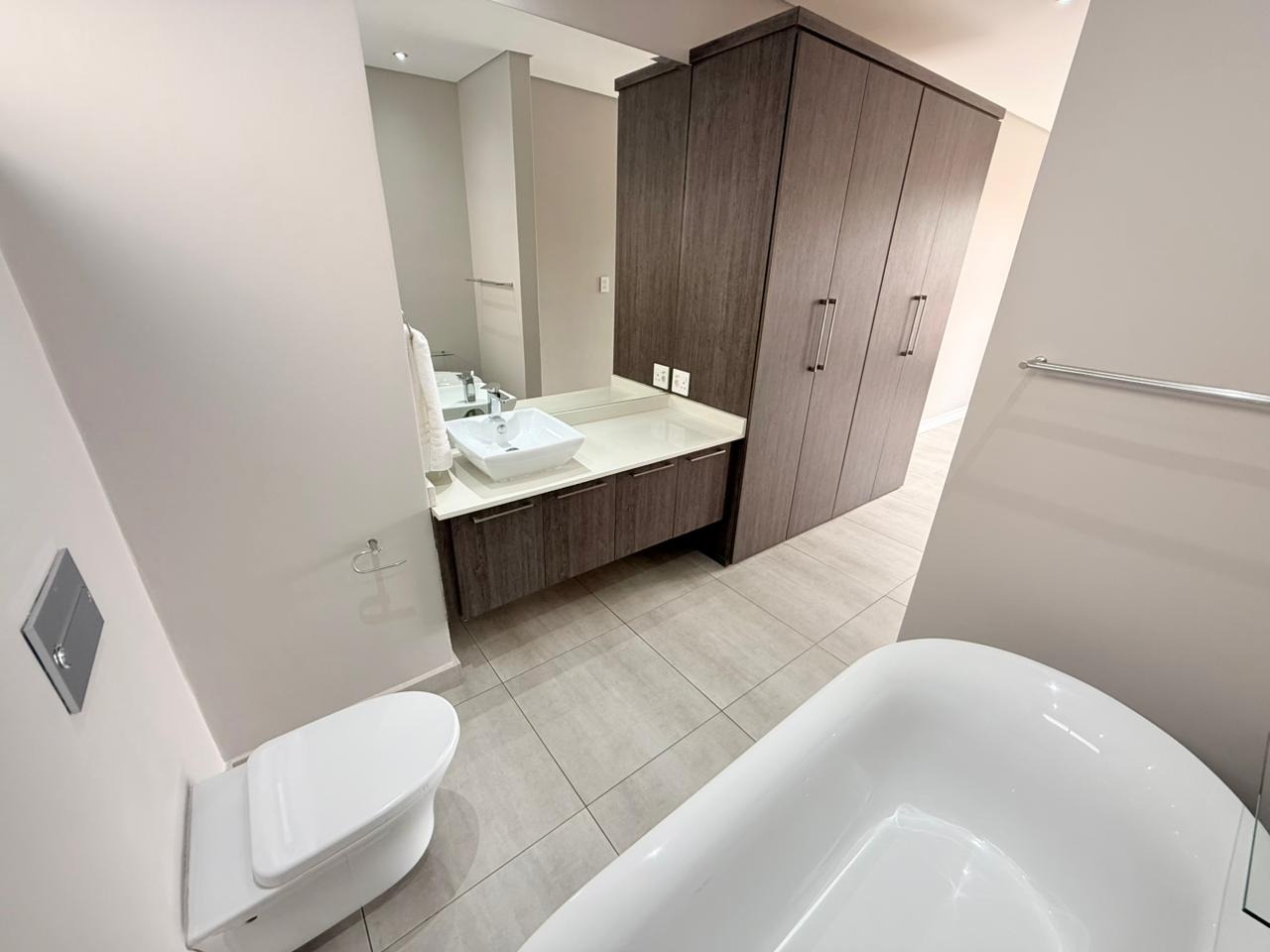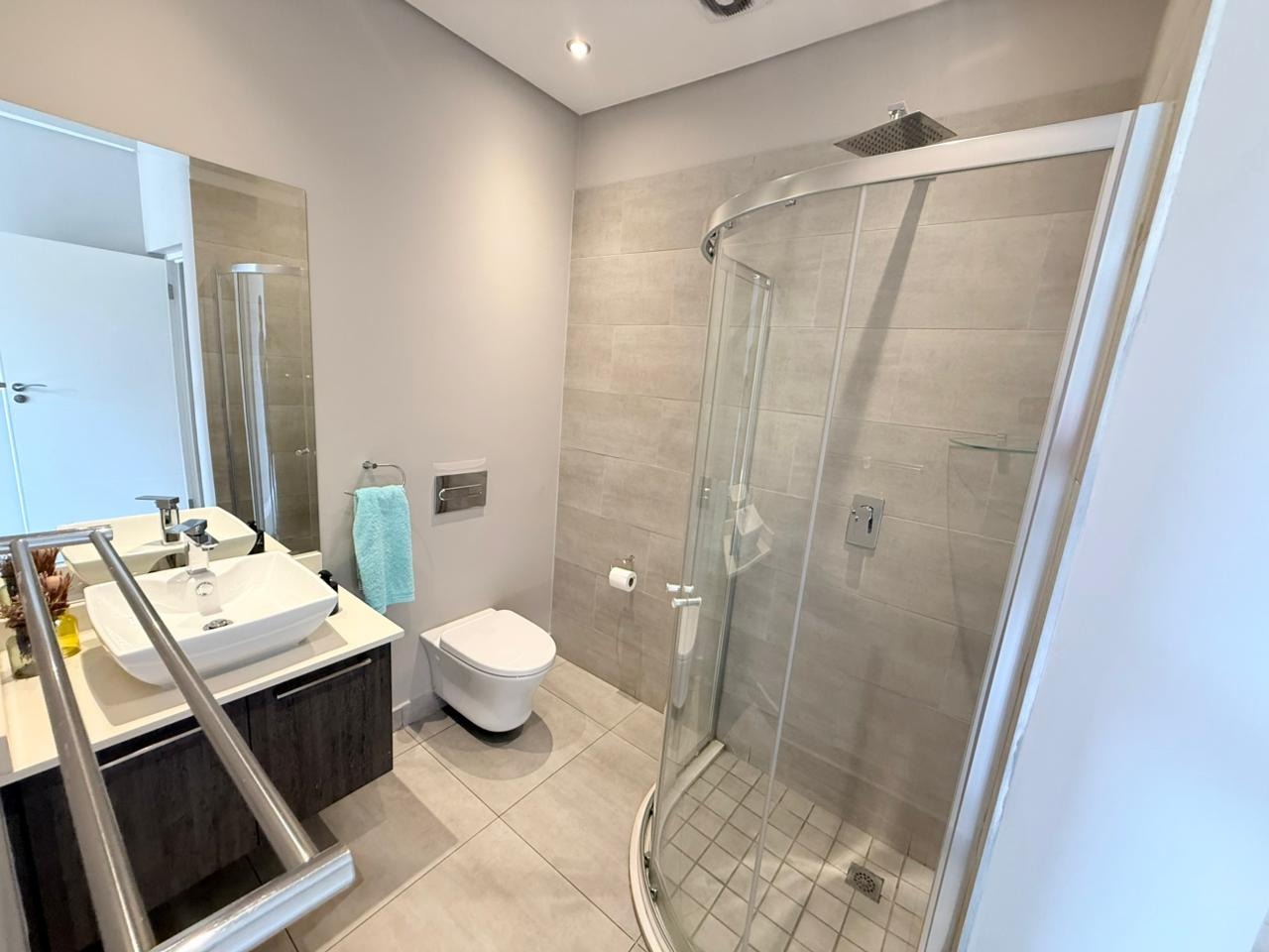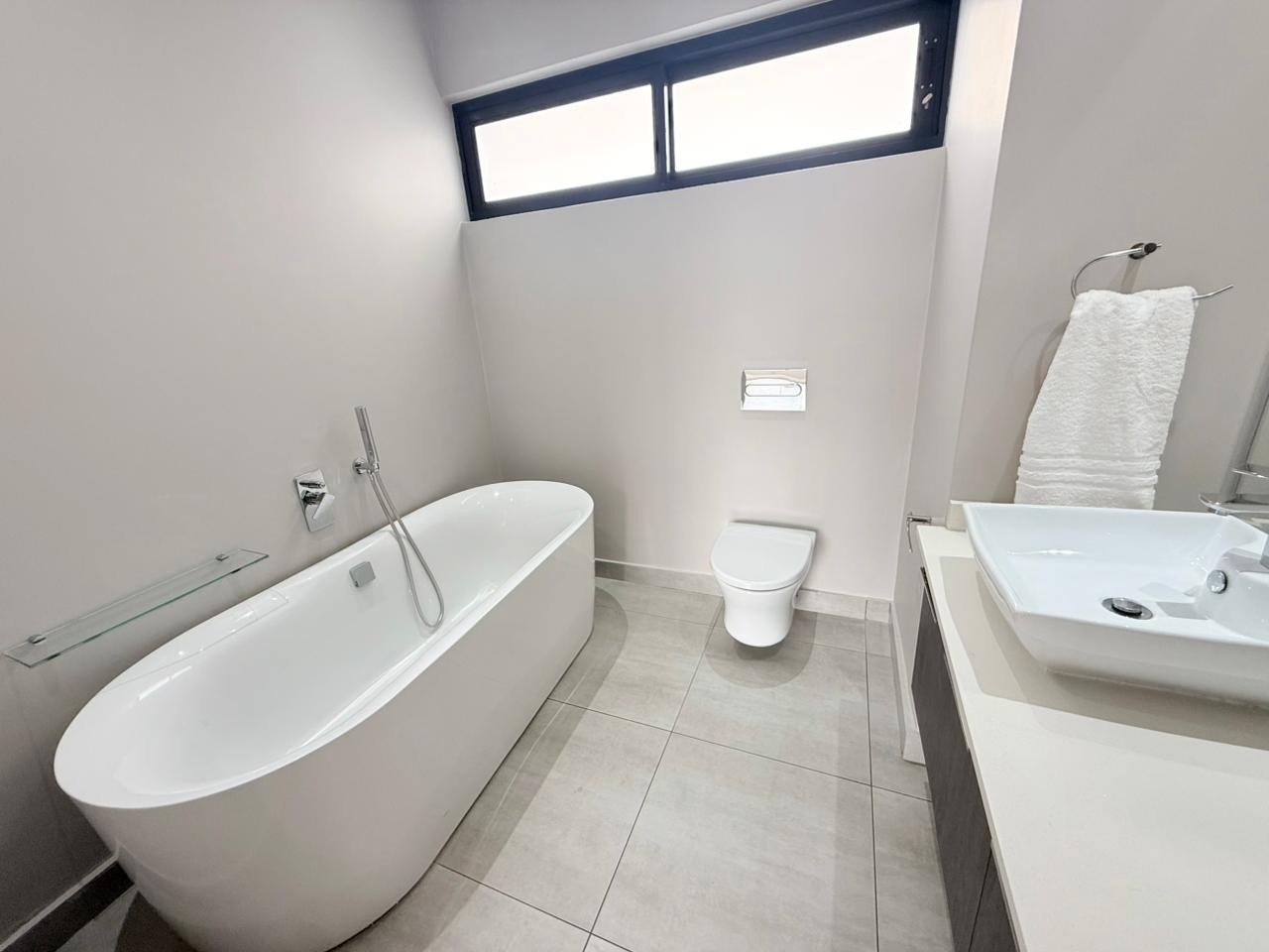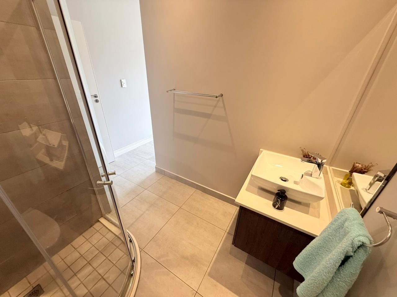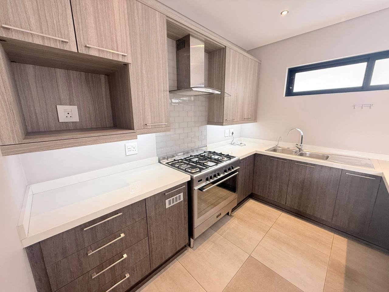 The apartment features a large open-plan kitchen, lounge, and dining area, creating a seamless and airy living space ideal for modern living. The kitchen is well-appointed with a gas stovetop, (ELBA appliance) granite countertops, ample cupboard space, a pantry cupboard, and a water filtration system, offering both functionality and style.