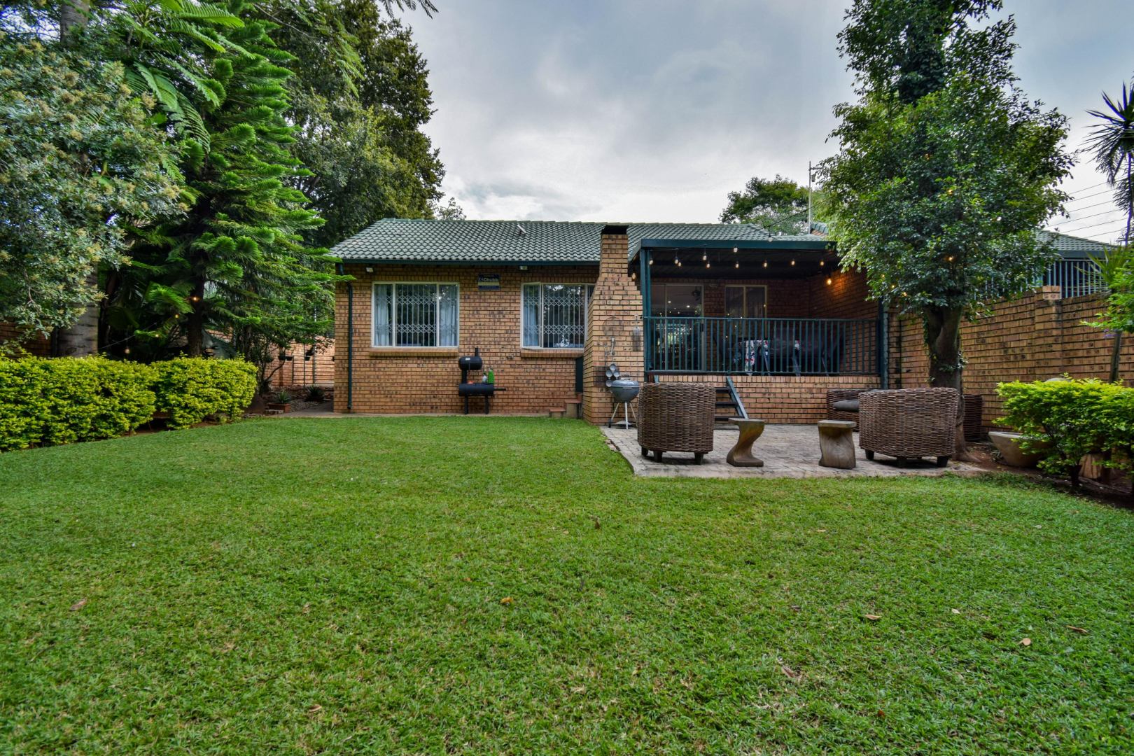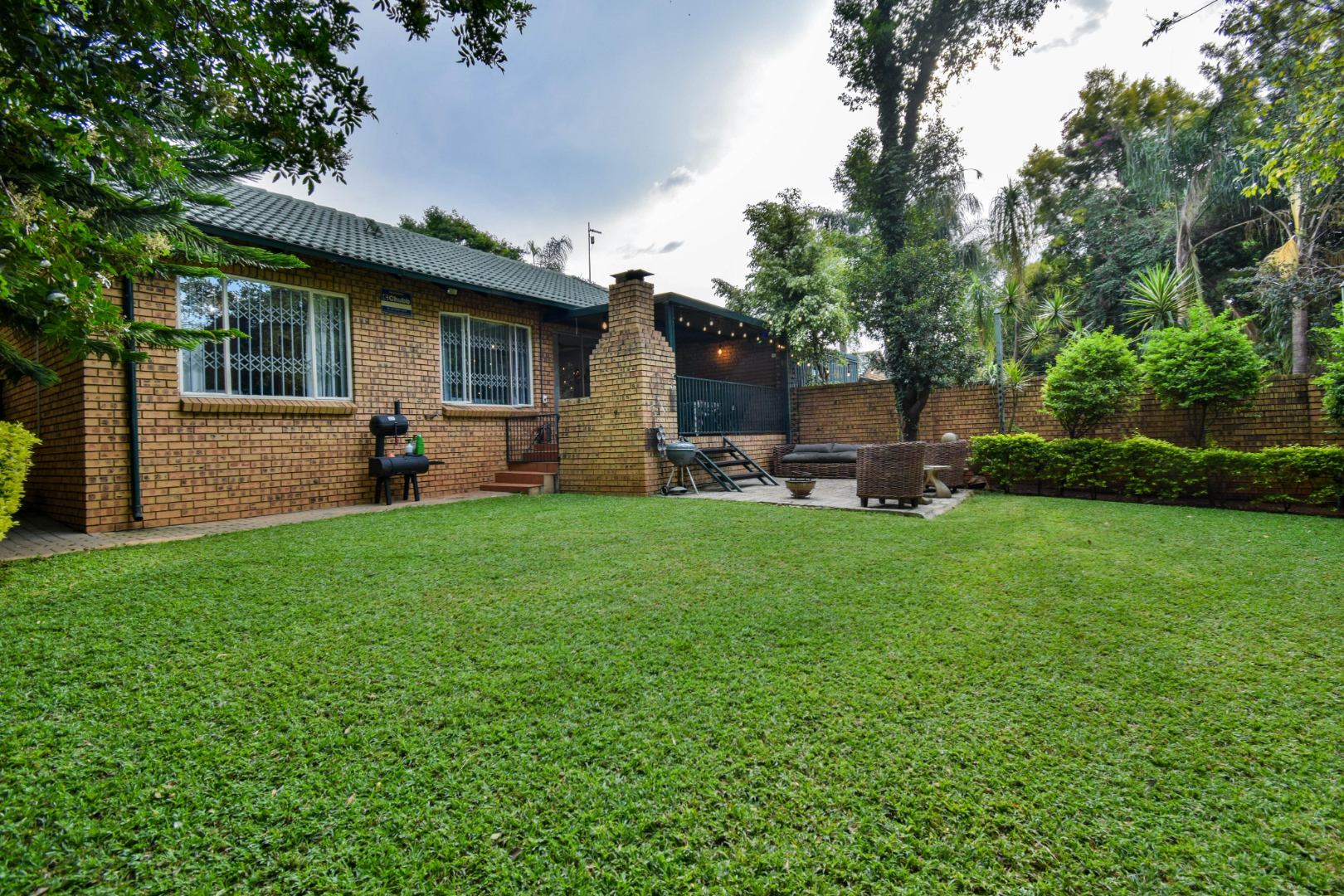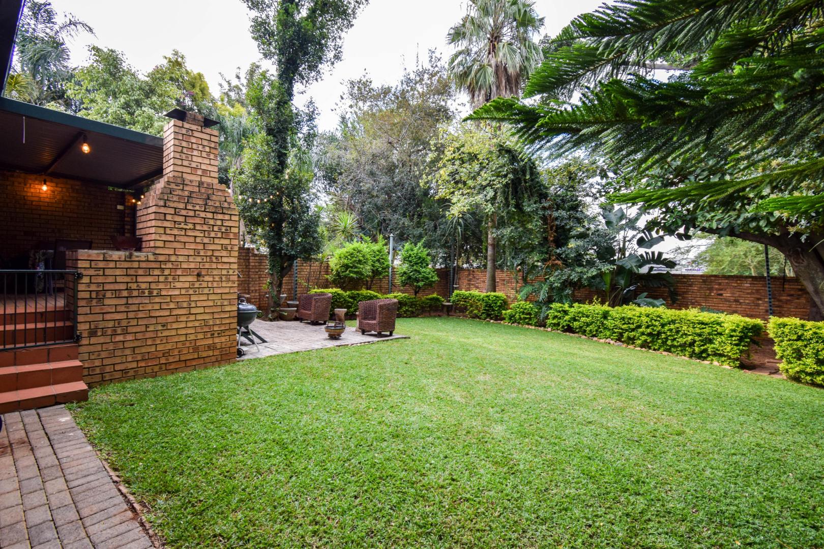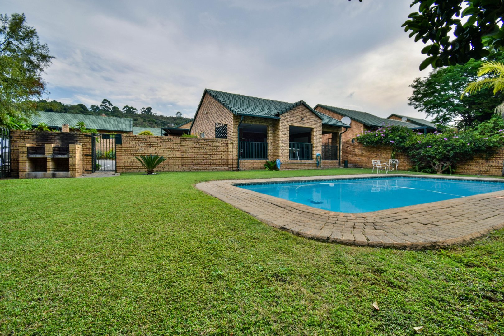 Step outside and you’re welcomed by a beautiful, well-sized garden with a lush green lawn, perfect for relaxing or entertaining. A covered patio with a built-in braai makes hosting a breeze, while the weekly garden service keeps everything looking its best.