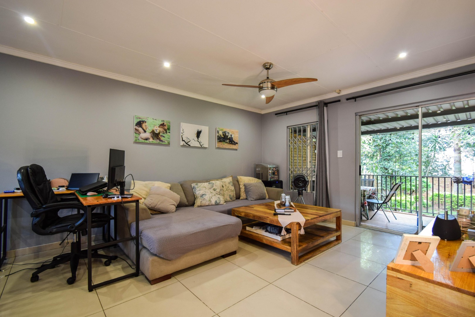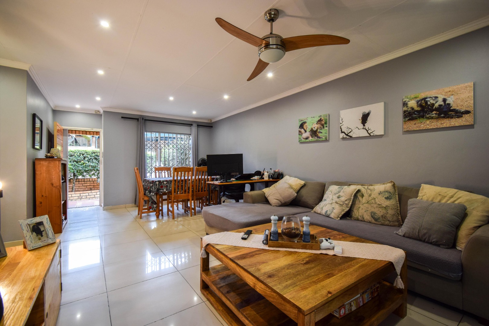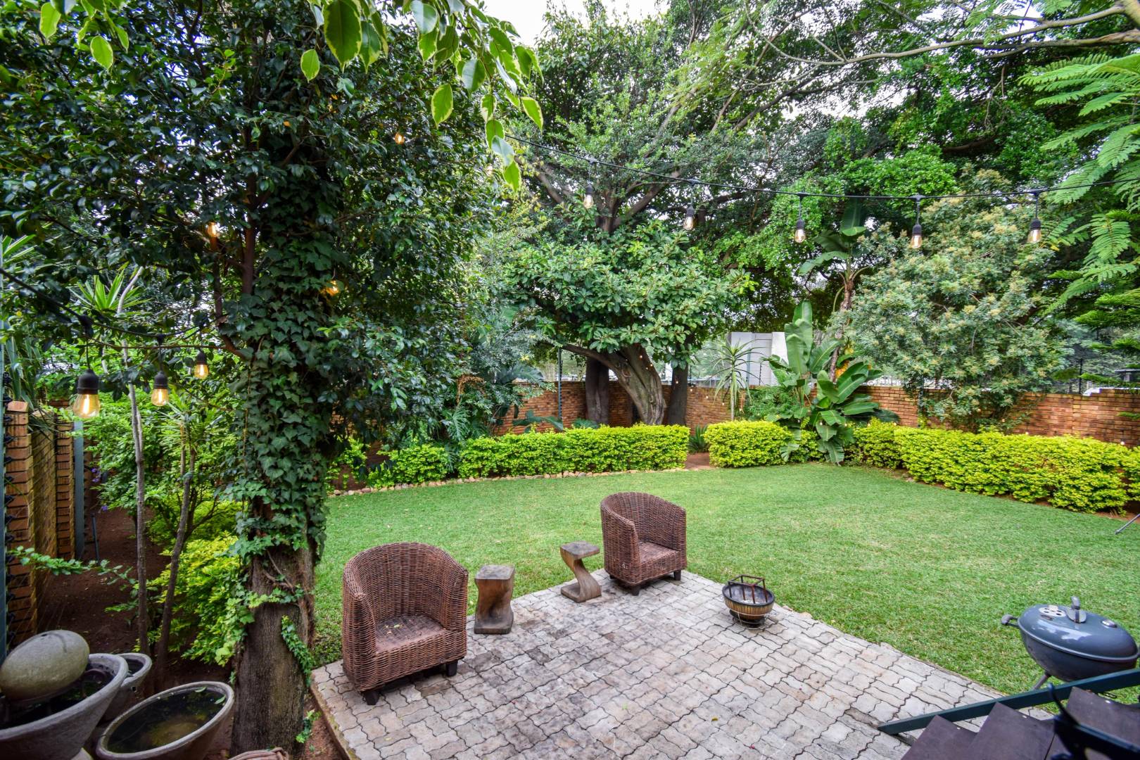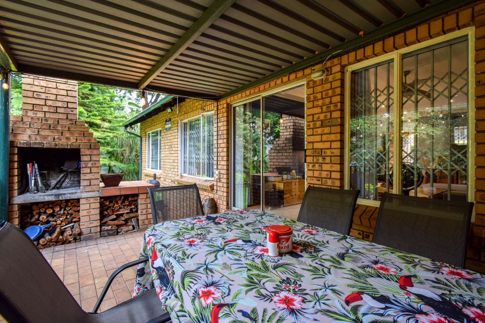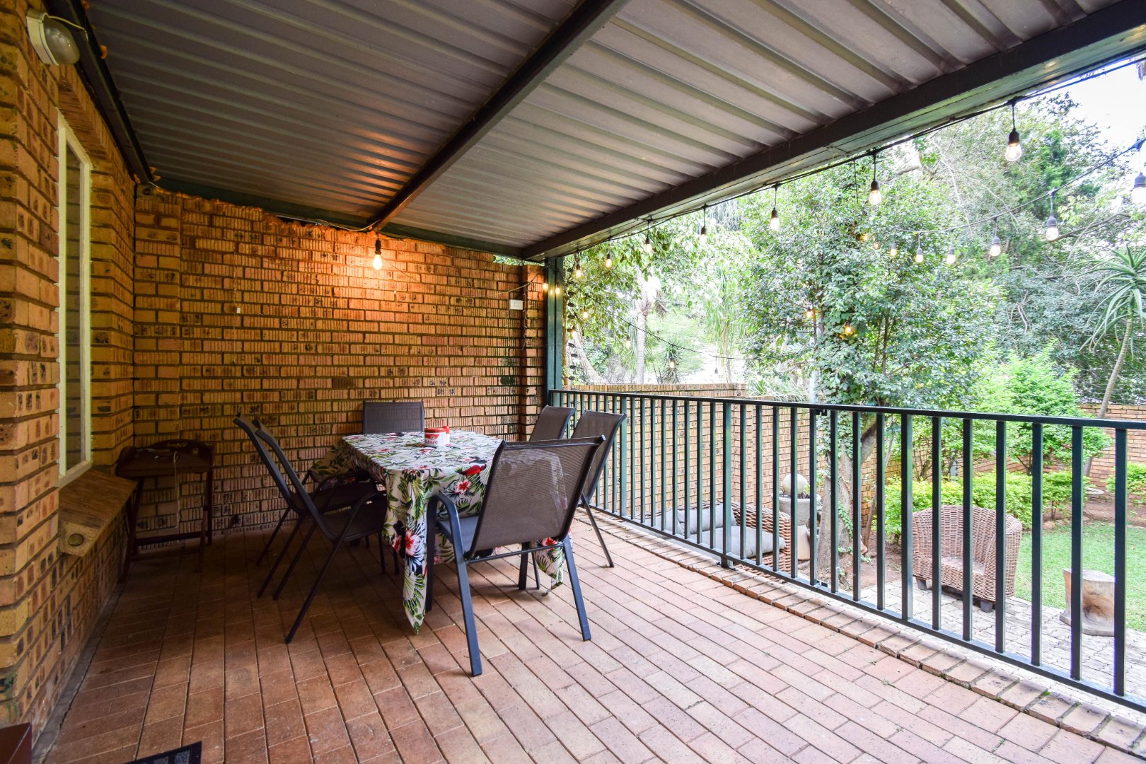 Step outside and you’re welcomed by a beautiful, well-sized garden with a lush green lawn, perfect for relaxing or entertaining. A covered patio with a built-in braai makes hosting a breeze, while the weekly garden service keeps everything looking its best.