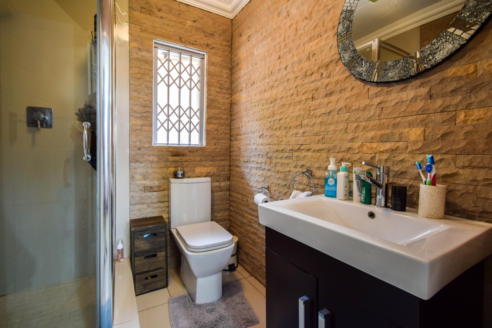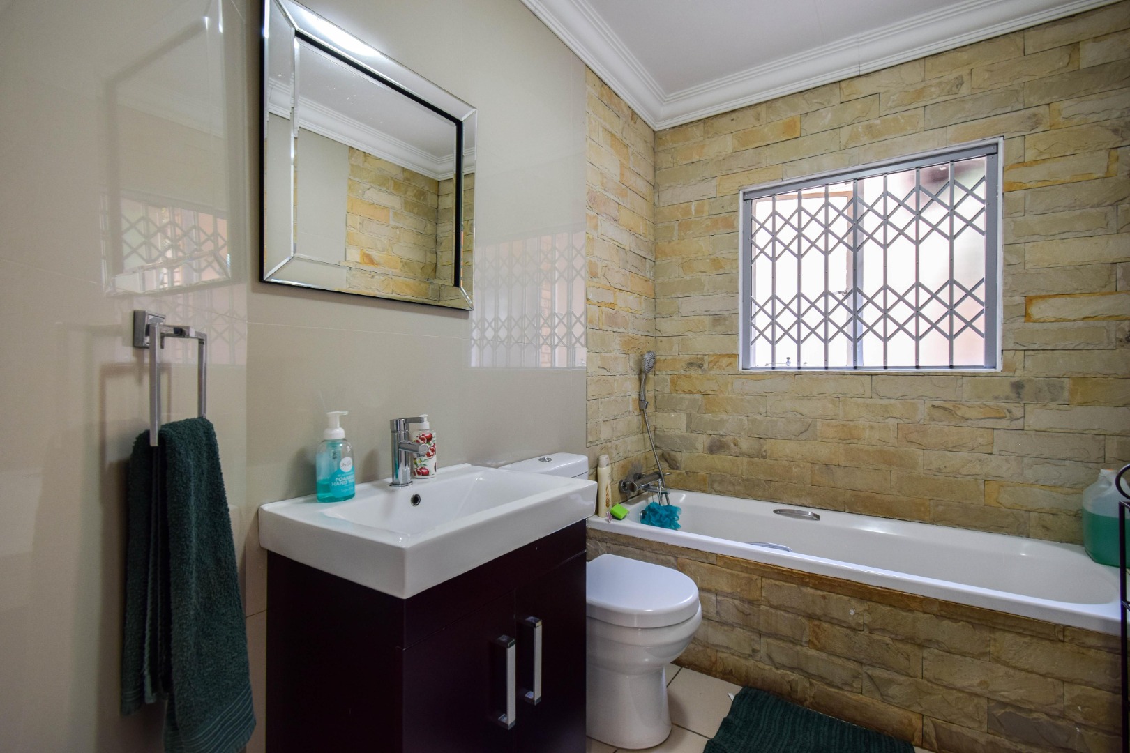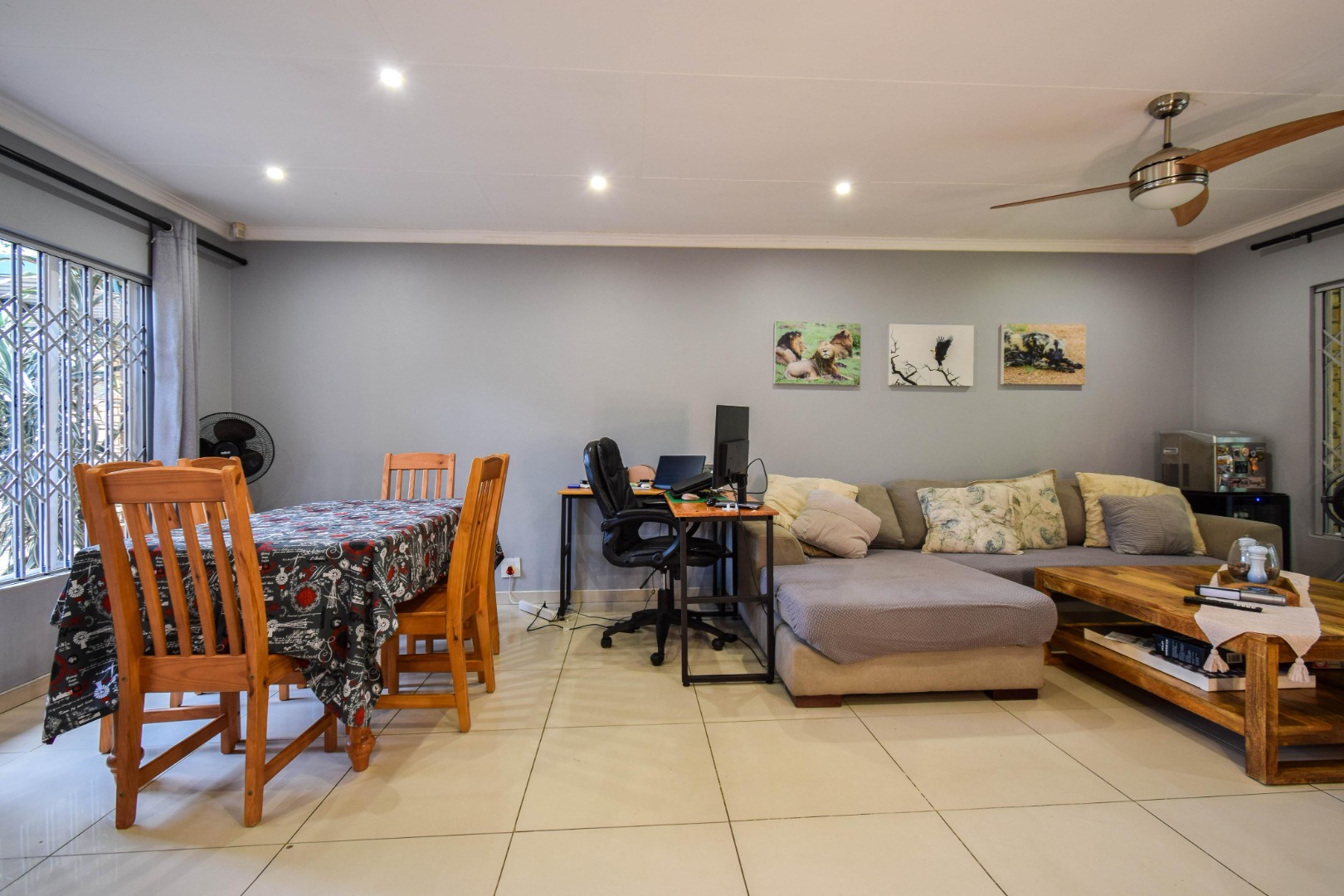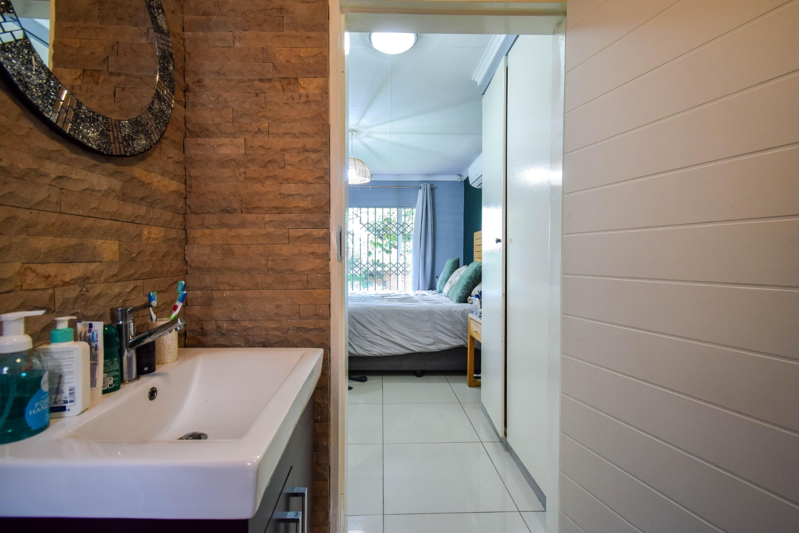 Step outside and you’re welcomed by a beautiful, well-sized garden with a lush green lawn, perfect for relaxing or entertaining. A covered patio with a built-in braai makes hosting a breeze, while the weekly garden service keeps everything looking its best.