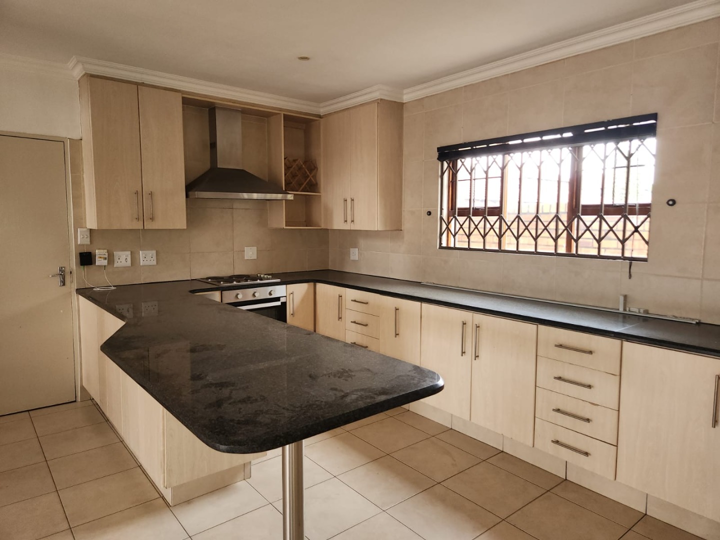 The home features a spacious, open-plan tiled living area that flows seamlessly into the kitchen. The kitchen is beautifully fitted with ample cupboards, granite countertops, and a cozy breakfast nook — perfect for enjoying your morning coffee or a quick snack before starting your day.
