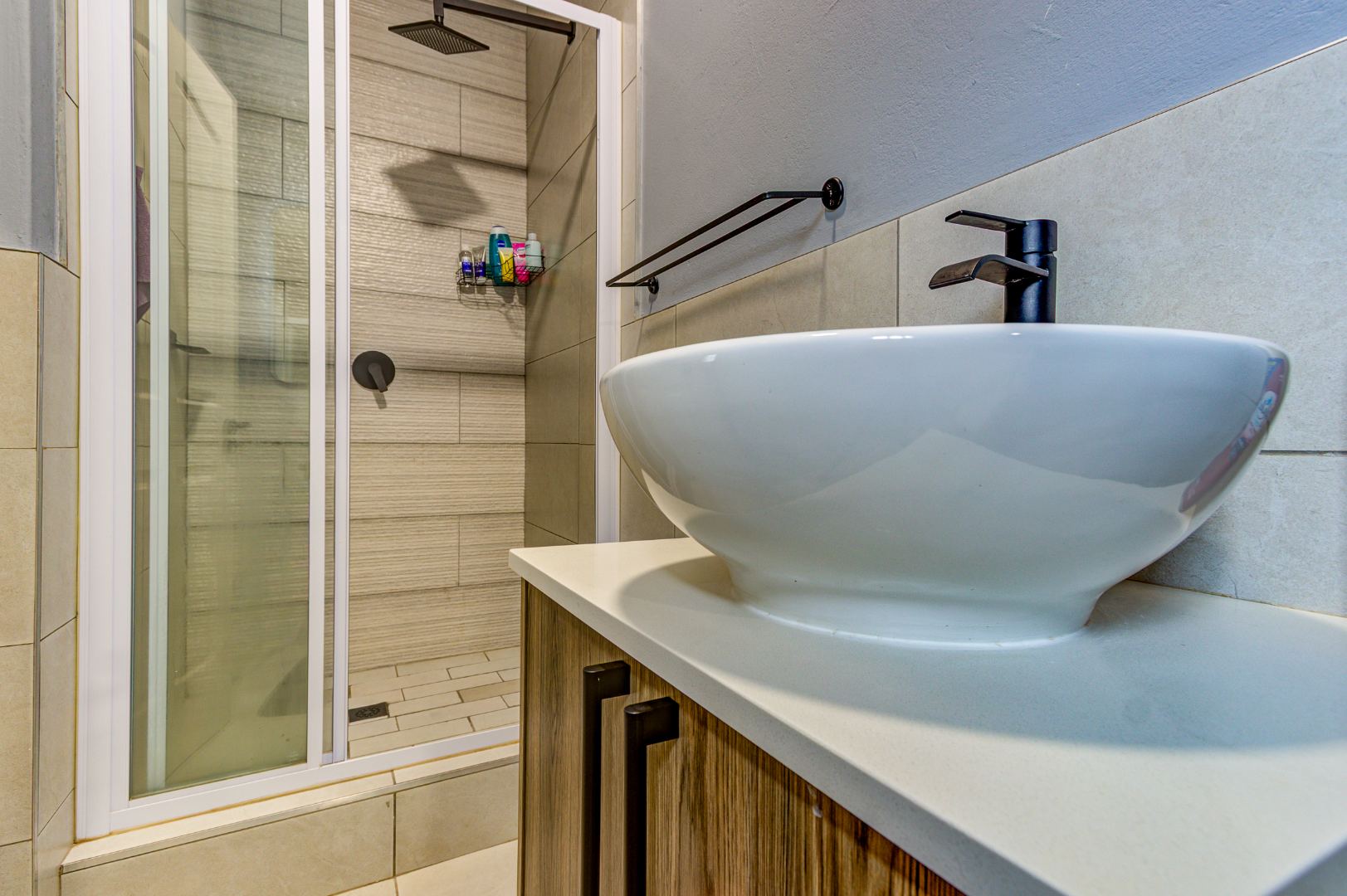 This modern residential property offers a sophisticated open-plan living experience within a secure complex in Pomona, Kempton Park.