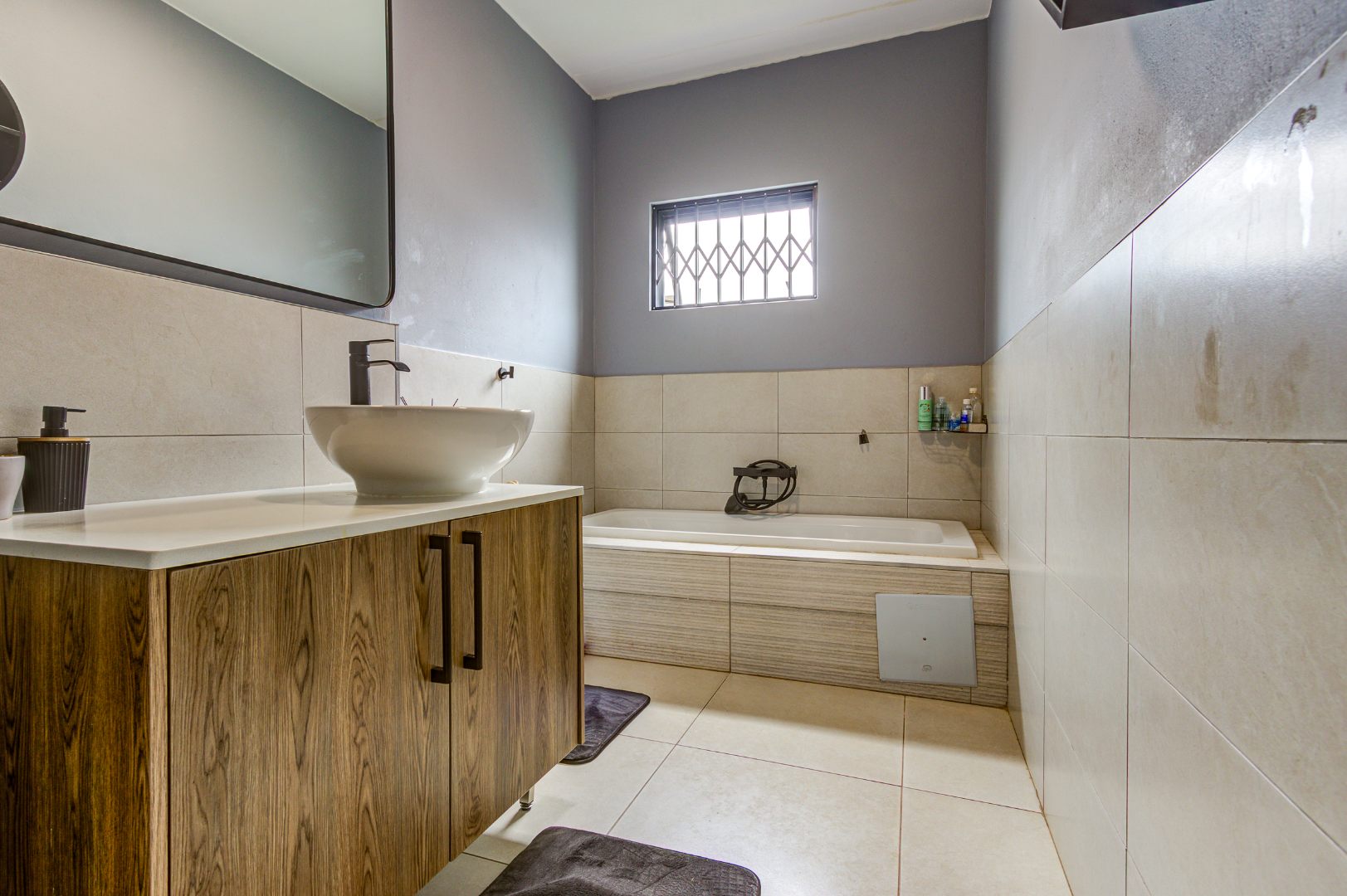 Security is a priority, with the property situated within a security complex and featuring security bars on windows and security gates on larger openings, ensuring peace of mind. The property also includes two dedicated parking bays.