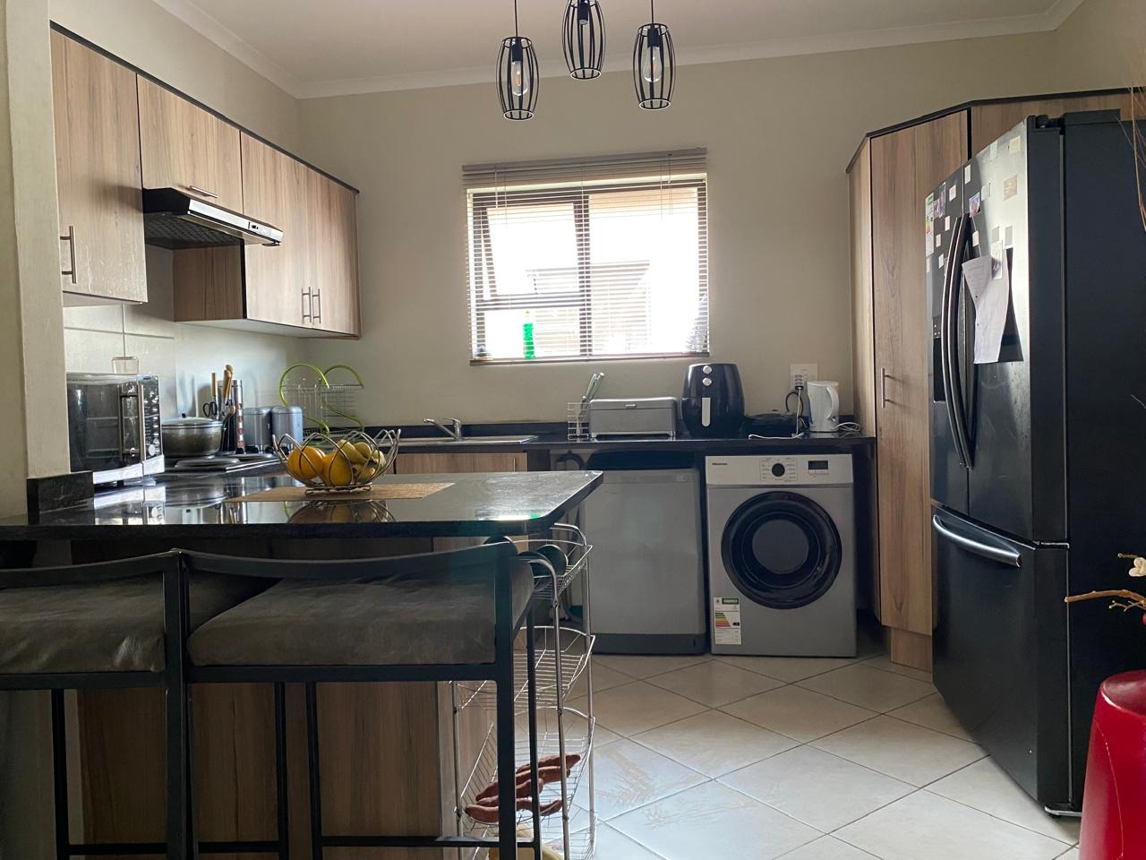 Discover this modern 2-bedroom, 2-bathroom rental unit situated in a sought-after security estate in Brentwood, Benoni. The interior boasts a contemporary design, featuring a well-appointed kitchen with stylish two-tone wooden cabinets and dark countertops, perfect for meal preparation and casual dining. Modern pendant lighting illuminates the space, complemented by durable tiled flooring throughout. The unit includes an open plan lounge and dining area, providing ample living space for residents.