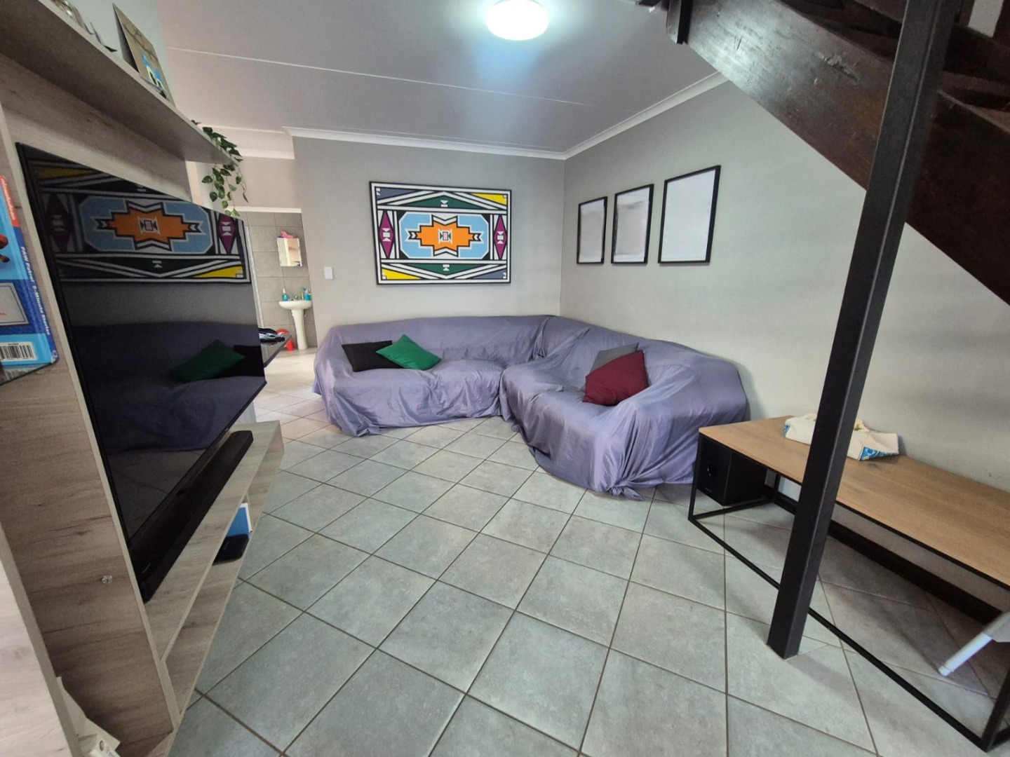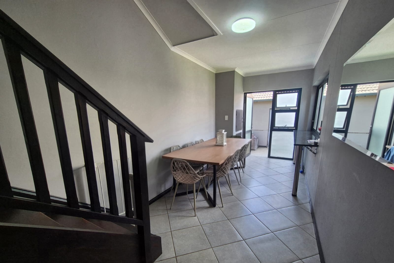Discover modern living in this inviting 3-bedroom, 2-bathroom rental unit located within a secure complex in Brentwood, Benoni. Spanning 96 sqm, this residence offers a well-designed open-plan layout, seamlessly connecting the lounge and dining areas. The interior boasts contemporary finishes, including sleek tiled flooring and neutral walls, creating a bright and welcoming atmosphere. A stylish open-riser staircase adds a touch of elegance, leading to the private upper level.