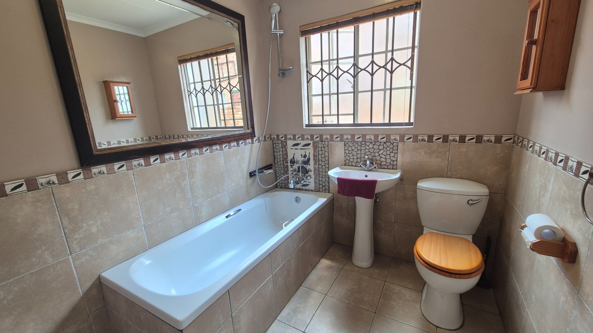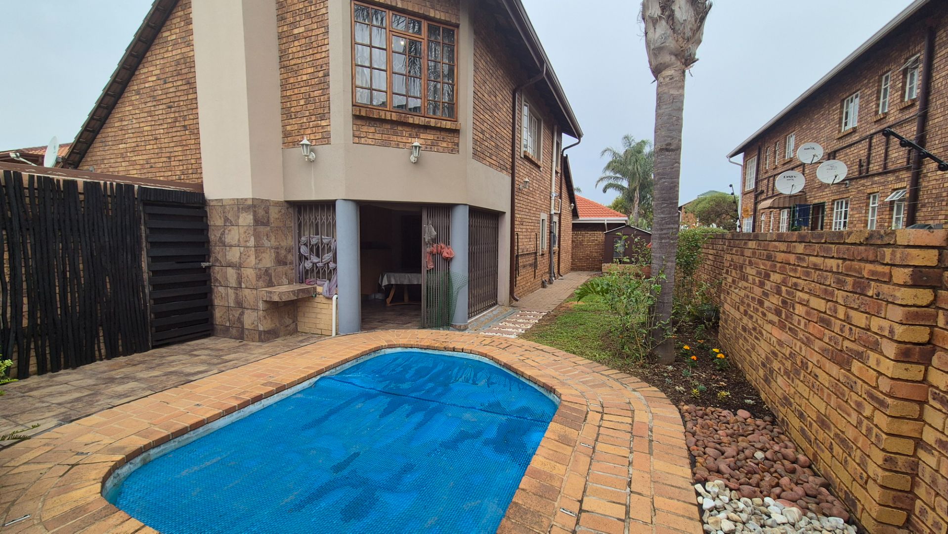 Discover this inviting 2-bedroom, 2-bathroom rental property located in the desirable suburban area of Farrarmere, Benoni. The home features a well-appointed L-shaped kitchen, complete with wood-toned cabinetry, dark speckled countertops, a built-in oven, gas hob, and range hood, alongside a convenient pantry. Tiled flooring ensures easy maintenance, while the dedicated lounge serves as a comfortable family TV room. Both bedrooms offer practical laminate wood flooring and ample storage with built-in wardrobes and shelving, one even boasting an en-suite bathroom for added privacy. Ideal for small families or professionals seeking a comfortable living space, this property caters to a relaxed lifestyle. Step outside to a private, covered kidney-shaped swimming pool, perfect for enjoying warm South African days. An enclosed braai room, featuring a built-in braai and tiled floors, provides an excellent space for entertaining guests, with large glass sliding doors connecting to the outdoors. The property also includes a garden and is pet-friendly, allowing for furry companions. Security is a priority, with the property benefiting from security gates, burglar bars on windows, and an access gate, providing peace of mind within this estate setting. Practical amenities include a single garage and an additional parking space, ensuring convenience for residents. The durable brick exterior and tiled roof contribute to the home's solid construction. Farrarmere is a well-established suburban area in Benoni, known for its family-friendly atmosphere and convenient access to local amenities. Its location within an estate offers a sense of community and enhanced living. Key Features: * 2 Bedrooms, 2 Bathrooms (1 en-suite) * L-shaped Kitchen with Built-in Oven & Gas Hob * Private Covered Swimming Pool * Enclosed Braai Room * Single Garage & Additional Parking * Built-in Wardrobes & Shelving * Pet-Friendly * Security Gates & Burglar Bars * Lounge / Family TV Room * Garden
