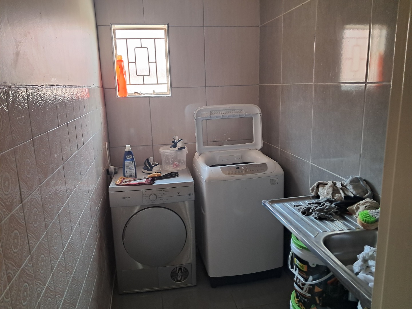 Security is a priority, with an alarm system, and burglar bars on windows providing peace of mind. This home is ideally suited for families seeking a substantial rental property in a residential setting within Benoni, offering both space and essential amenities.