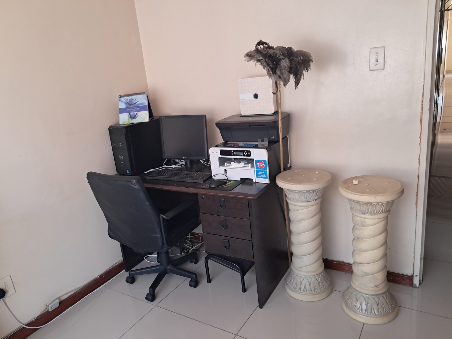 The interior presents a practical layout with tiled flooring throughout, ensuring easy maintenance. Enjoy multiple reception areas, including a large lounge, providing versatile spaces for relaxation and entertainment. A distinct dining room, perfect for family meals and gatherings. The property includes a functional kitchen, ready to accommodate your culinary needs.