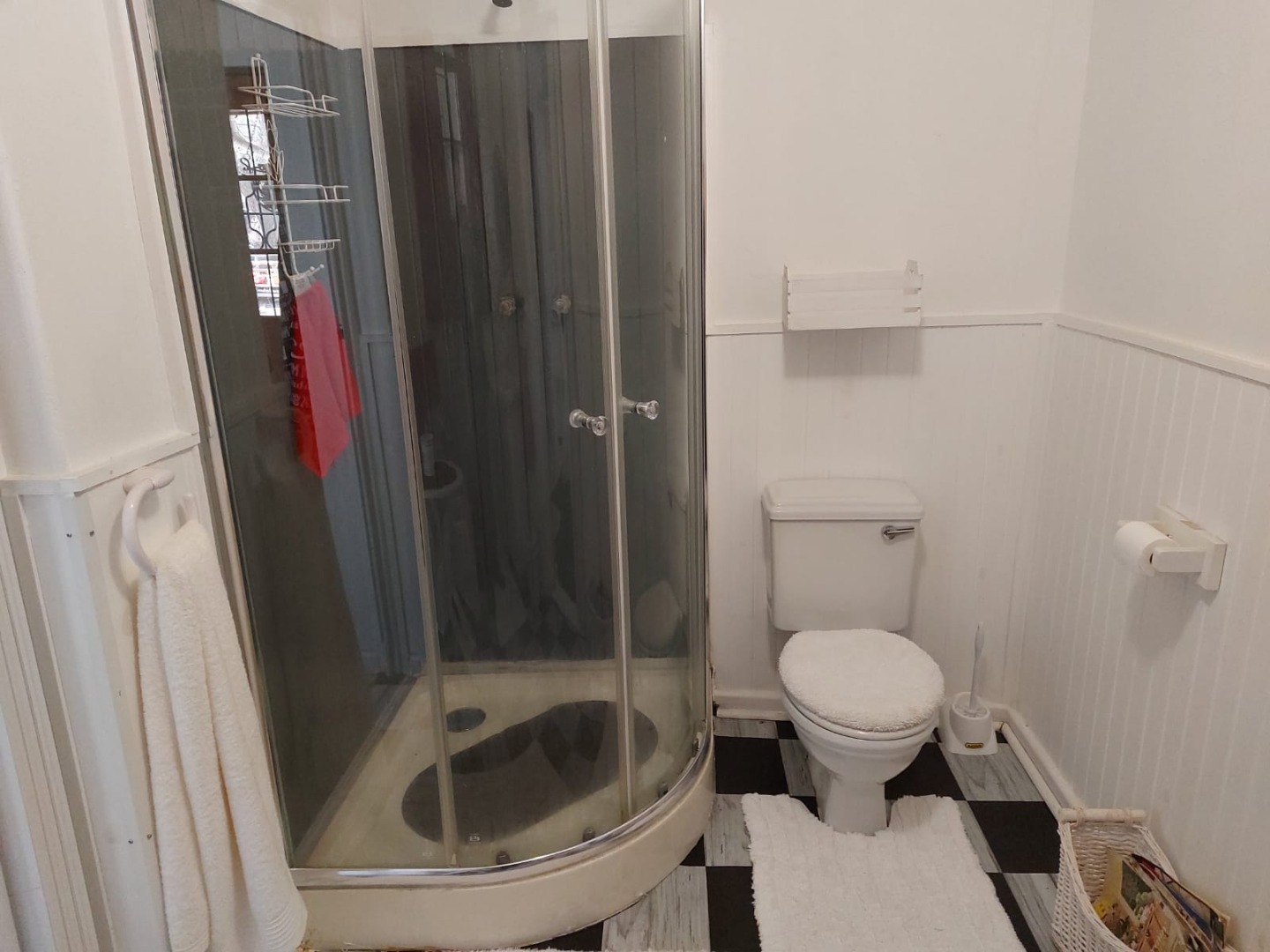 This charming 1-bedroom, 1-bathroom rental offers a super cozy and vibrant living space. You'll find a compact kitchen equipped with essential appliances like a fridge, stove, microwave, toaster, and kettle, making daily meals a breeze. The open-plan lounge and dining area are bright and full of character, featuring eclectic decor and comfy seating in lively colours. The bathroom is neat and functional, complete with a shower, and continues the property's unique style with its black and white checkered floor.