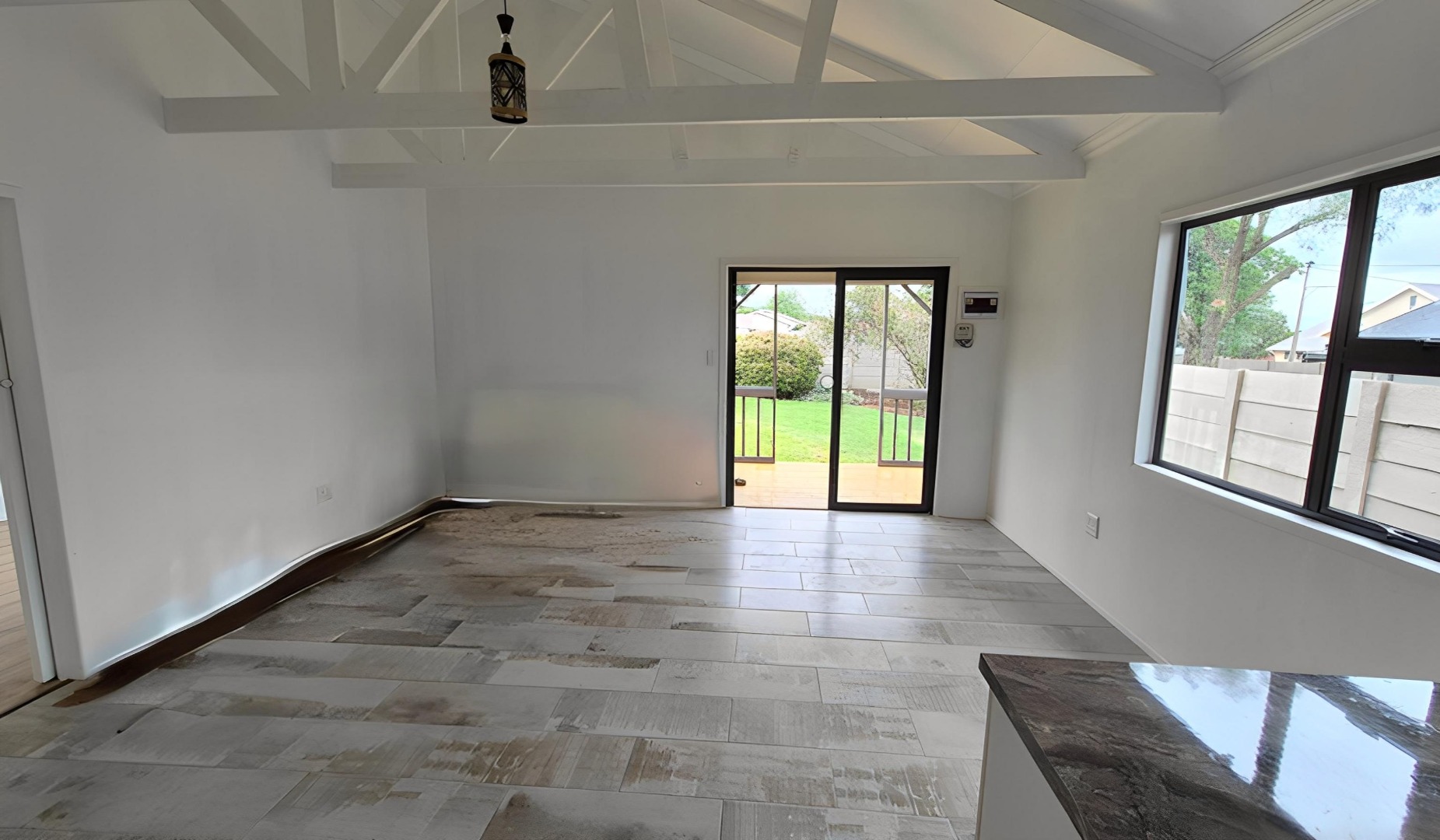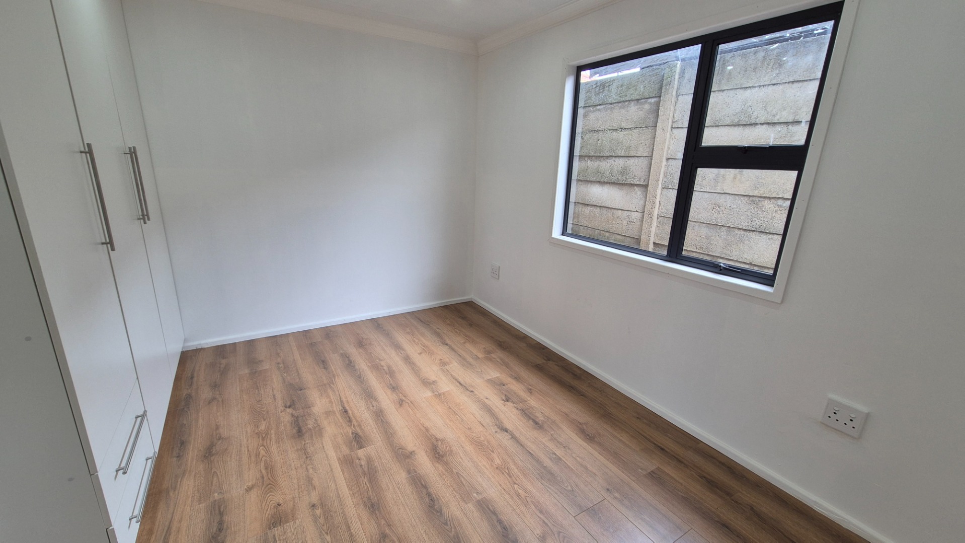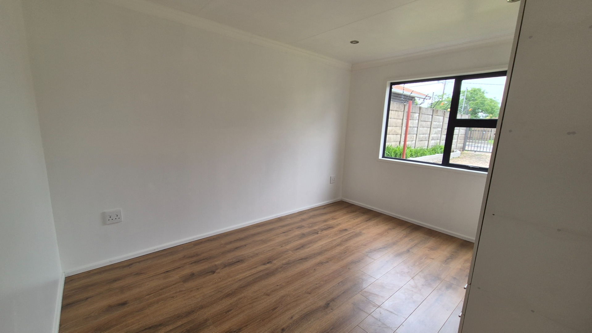 This modern 2-bedroom, 1-bathroom rental property in Northmead, Benoni, offers a contemporary living experience. The interior boasts an open-plan design, featuring bright white walls, stylish wood-look tiled flooring, and impressive vaulted ceilings with exposed trusses that enhance the sense of space and light. The well-appointed kitchen is a highlight, equipped with new white cabinetry, dark marbled-look countertops, an integrated gas stovetop, and a double sink, providing both functionality and aesthetic appeal. A comfortable lounge and a dedicated dining area complete the inviting living spaces. Each of the two bedrooms is designed for comfort, featuring clean white walls, modern laminate wood flooring, and practical built-in wardrobes for ample storage. Large windows and a sliding glass door ensure abundant natural light throughout the home, with the latter opening onto a private outdoor patio and a small, well-maintained garden area, perfect for relaxation. The property also includes two dedicated parking spaces, catering to convenience for residents. The exterior presents a newly renovated look with light grey siding and a welcoming wooden front porch. While the property offers a private garden and patio, it is also pet-friendly, making it suitable for individuals or small families with furry companions. For connectivity, the home is fibre-ready, ensuring high-speed internet access. The perimeter is secured by sturdy concrete walls with visible security wiring, providing a sense of privacy and peace of mind. Situated in this established suburban area, this home benefits from its convenient location. Northmead offers a balanced lifestyle with access to local amenities and transport routes, making it an attractive option for those seeking a comfortable rental in the East Rand. Key Features: * 2 Bedrooms, 1 Bathroom * Modern Open-Plan Living * Contemporary Kitchen with Gas Stove * Vaulted Ceilings & Wood-Look Flooring * Private Patio & Garden * 2 Parking Spaces * Pet-Friendly * Fibre-Ready * Secure Perimeter Walls
