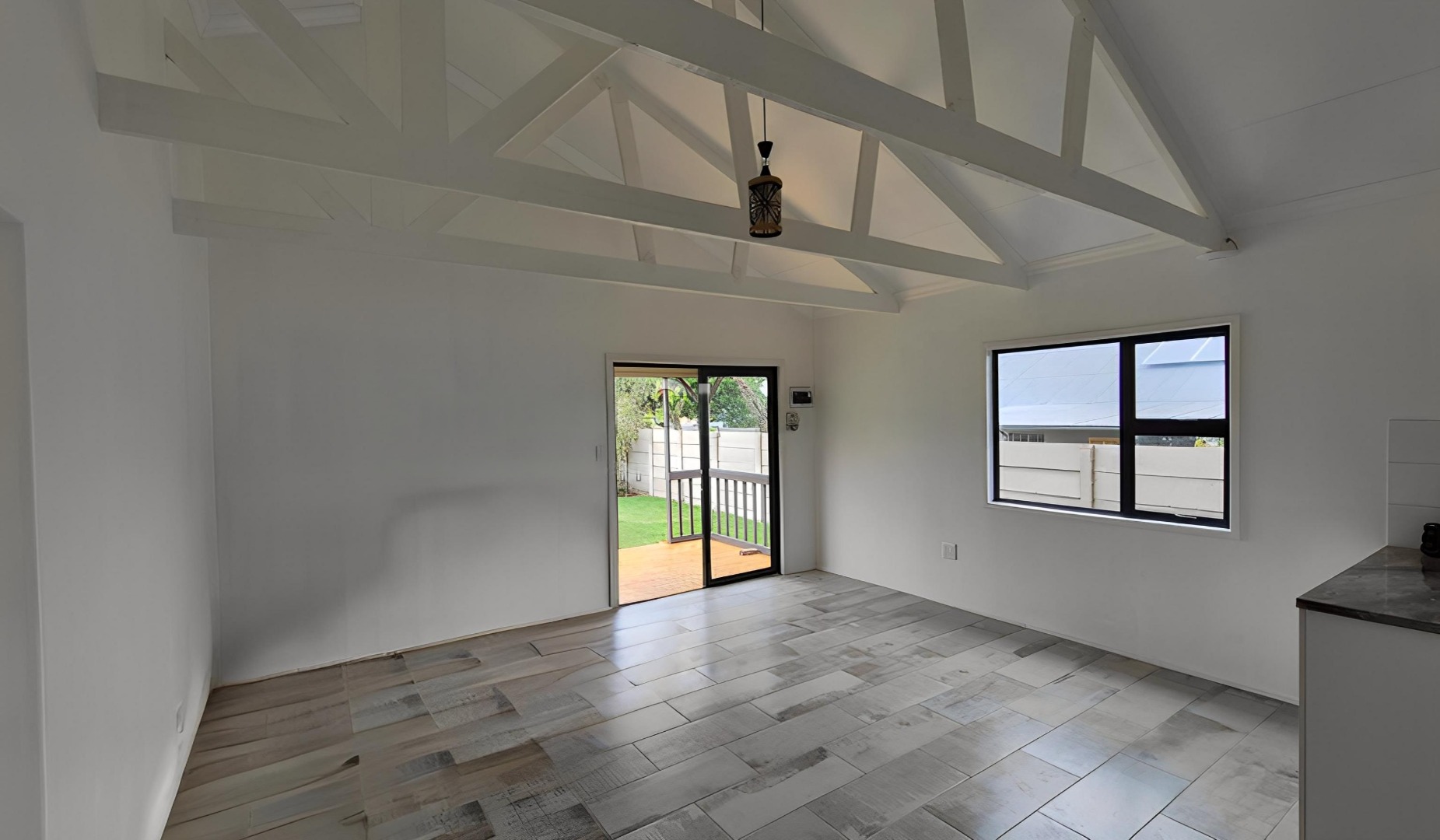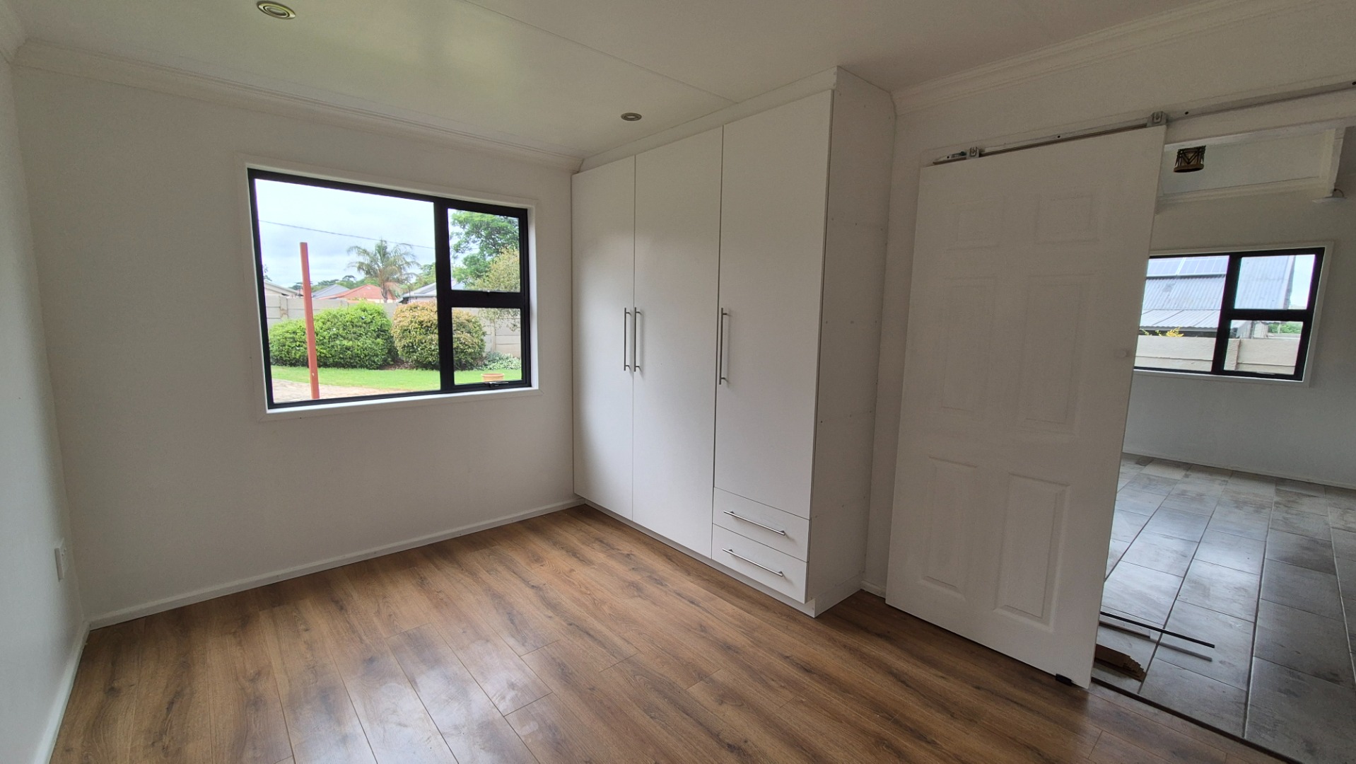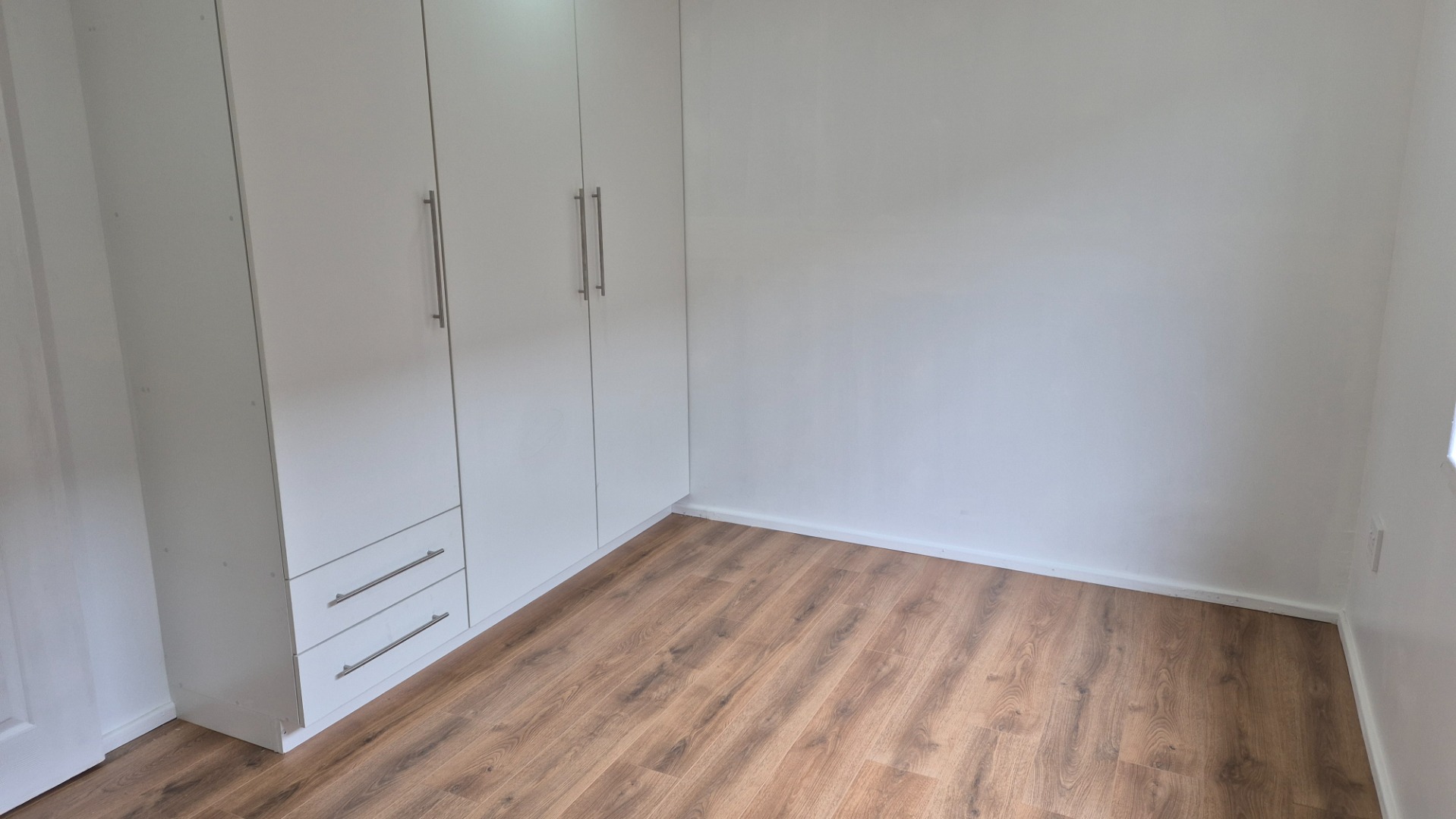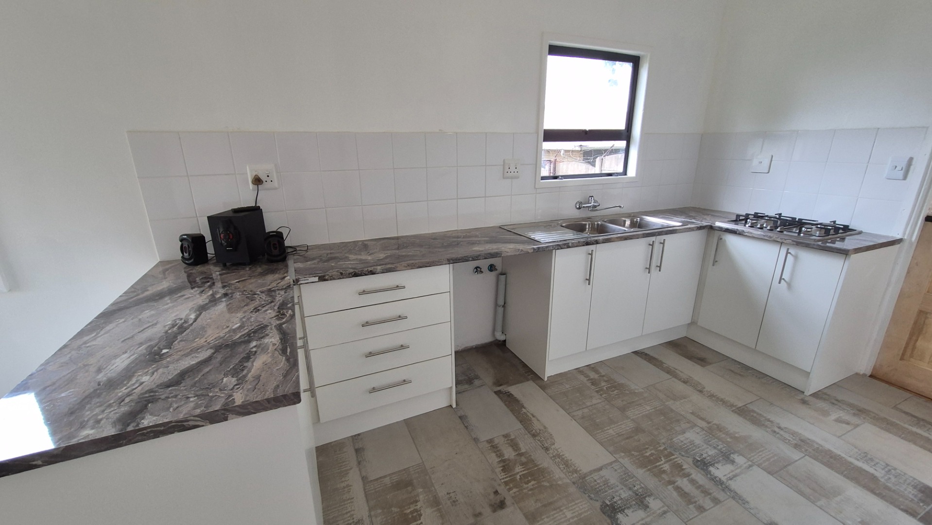 This modern 2-bedroom, 1-bathroom rental property in Northmead, Benoni, offers a contemporary living experience. The interior boasts an open-plan design, featuring bright white walls, stylish wood-look tiled flooring, and impressive vaulted ceilings with exposed trusses that enhance the sense of space and light. The well-appointed kitchen is a highlight, equipped with new white cabinetry, dark marbled-look countertops, an integrated gas stovetop, and a double sink, providing both functionality and aesthetic appeal. A comfortable lounge and a dedicated dining area complete the inviting living spaces. Each of the two bedrooms is designed for comfort, featuring clean white walls, modern laminate wood flooring, and practical built-in wardrobes for ample storage. Large windows and a sliding glass door ensure abundant natural light throughout the home, with the latter opening onto a private outdoor patio and a small, well-maintained garden area, perfect for relaxation. The property also includes two dedicated parking spaces, catering to convenience for residents. The exterior presents a newly renovated look with light grey siding and a welcoming wooden front porch. While the property offers a private garden and patio, it is also pet-friendly, making it suitable for individuals or small families with furry companions. For connectivity, the home is fibre-ready, ensuring high-speed internet access. The perimeter is secured by sturdy concrete walls with visible security wiring, providing a sense of privacy and peace of mind. Situated in this established suburban area, this home benefits from its convenient location. Northmead offers a balanced lifestyle with access to local amenities and transport routes, making it an attractive option for those seeking a comfortable rental in the East Rand. Key Features: * 2 Bedrooms, 1 Bathroom * Modern Open-Plan Living * Contemporary Kitchen with Gas Stove * Vaulted Ceilings & Wood-Look Flooring * Private Patio & Garden * 2 Parking Spaces * Pet-Friendly * Fibre-Ready * Secure Perimeter Walls