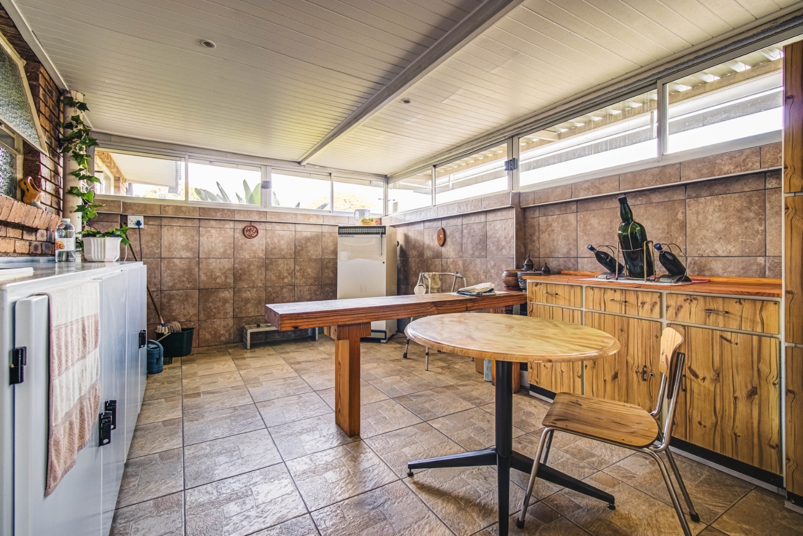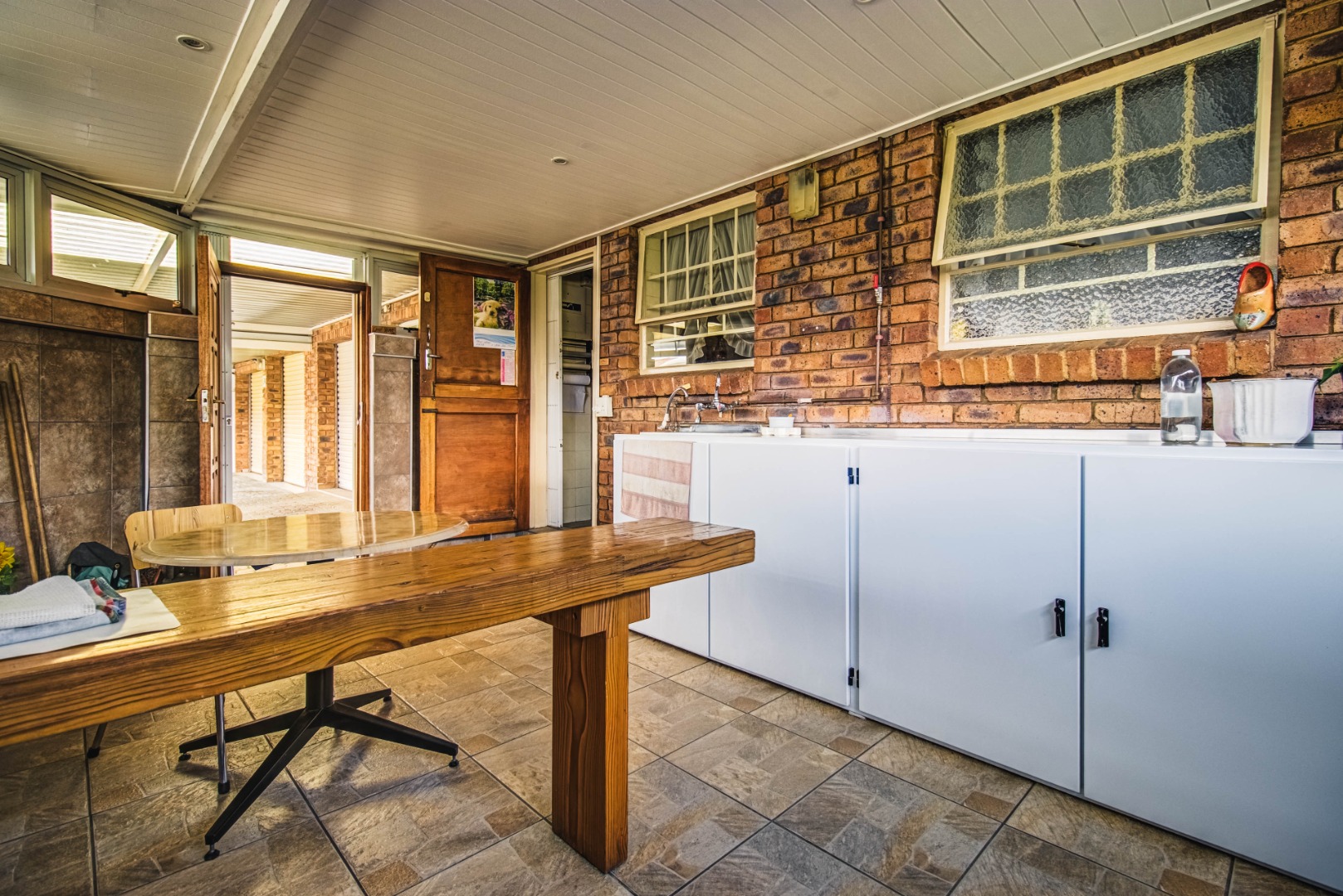 The interior features a welcoming lounge and a dedicated dining room, providing ample space for relaxation and entertaining. The functional kitchen is well-appointed, complemented by a separate laundry room that adds to the practicality of daily living. This thoughtful layout ensures all essential amenities are easily accessible and contribute to a streamlined household routine.