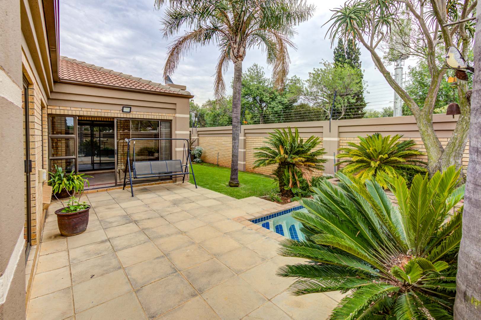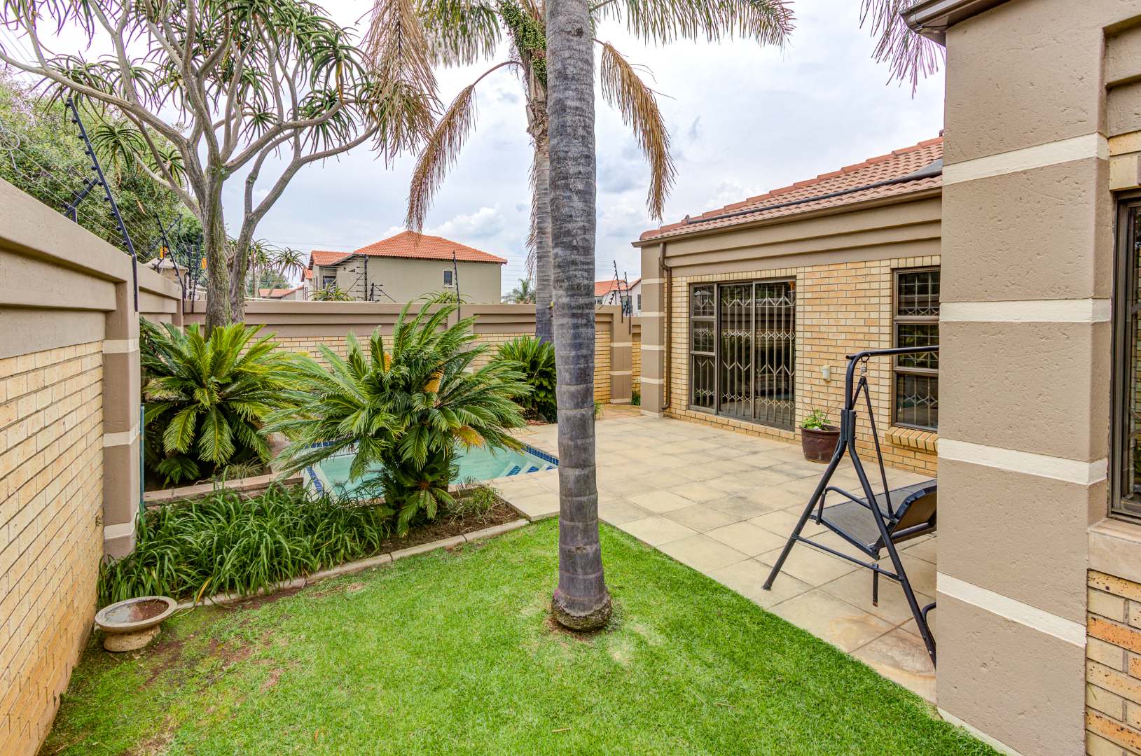 Outside, the property presents a well-maintained exterior with attractive landscaping, a neat lawn, and a paved driveway leading to a double garage, offering secure parking and additional storage. Enjoy the luxury of a private swimming pool, complemented by an irrigation system to keep the garden lush. This home is ideal for families or professionals seeking a lock-up-and-go lifestyle without compromising on space or amenities.