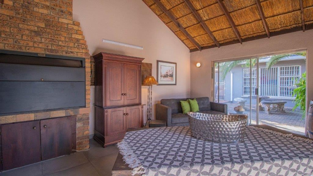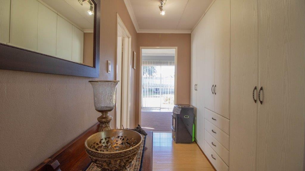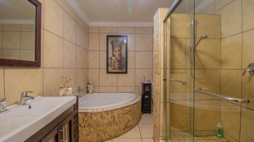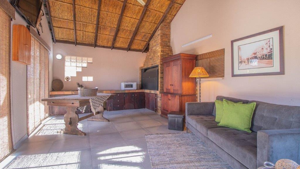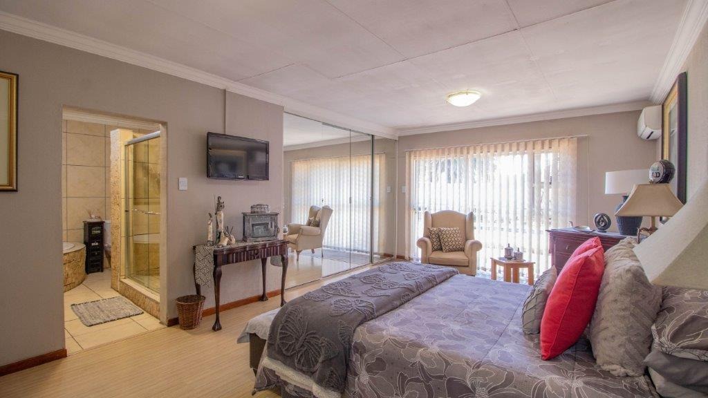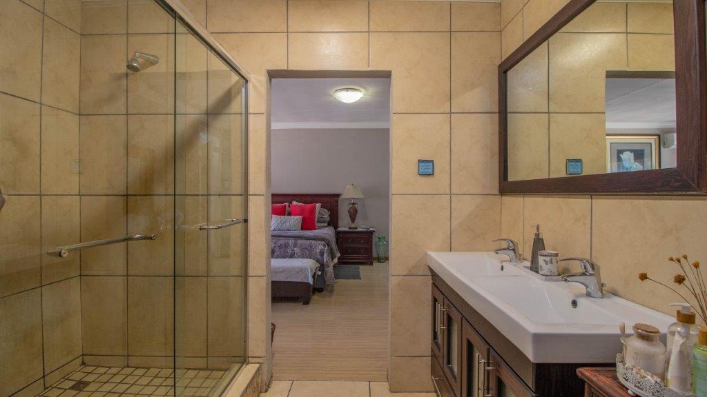 For entertainers, the home offers a stunning entertainment room with a built-in braai and glass doors leading out to an undercover patio that overlooks the sparkling swimming pool—perfect for hosting friends and family all year round.