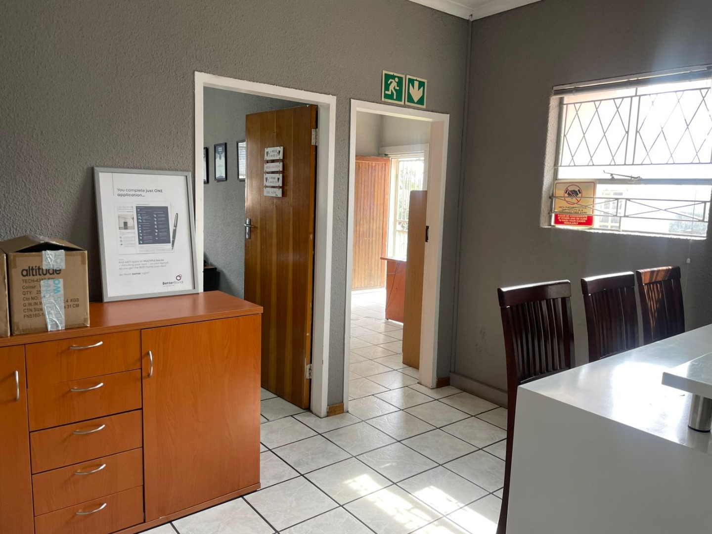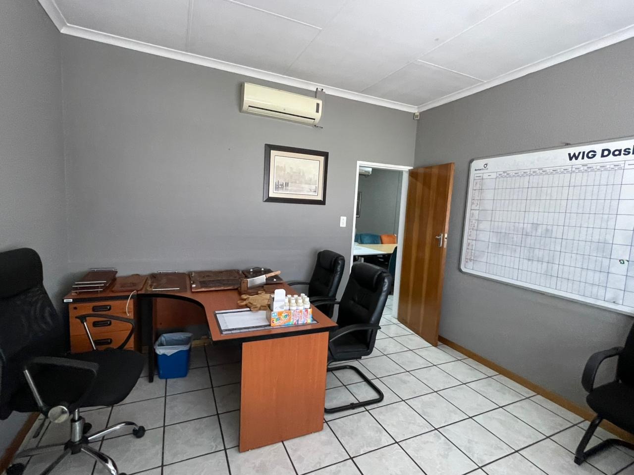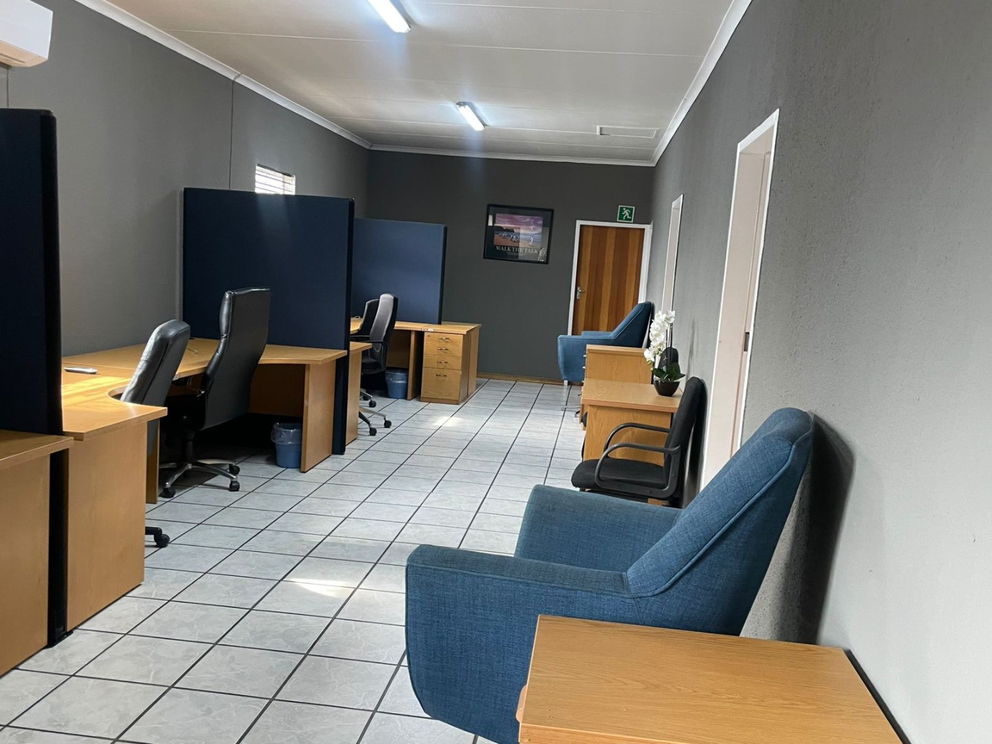 4 spacious private offices (fits ±2–3 desks each)