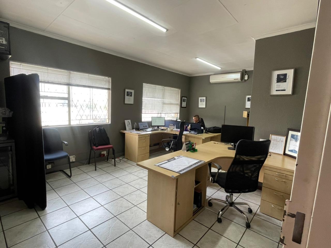 4 spacious private offices (fits ±2–3 desks each)