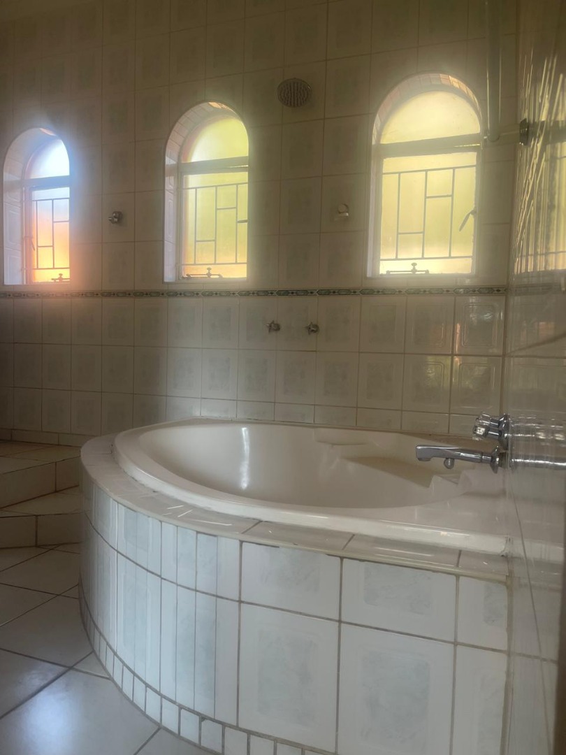 Practicality is key with a double garage and an additional six open parking bays, providing abundant space for vehicles. A versatile utility room offers built-in storage solutions. For peace of mind, the property is equipped with visible security gates and window bars, enhancing safety. This home is ideally suited for families seeking a comfortable and secure lifestyle in Centurion.