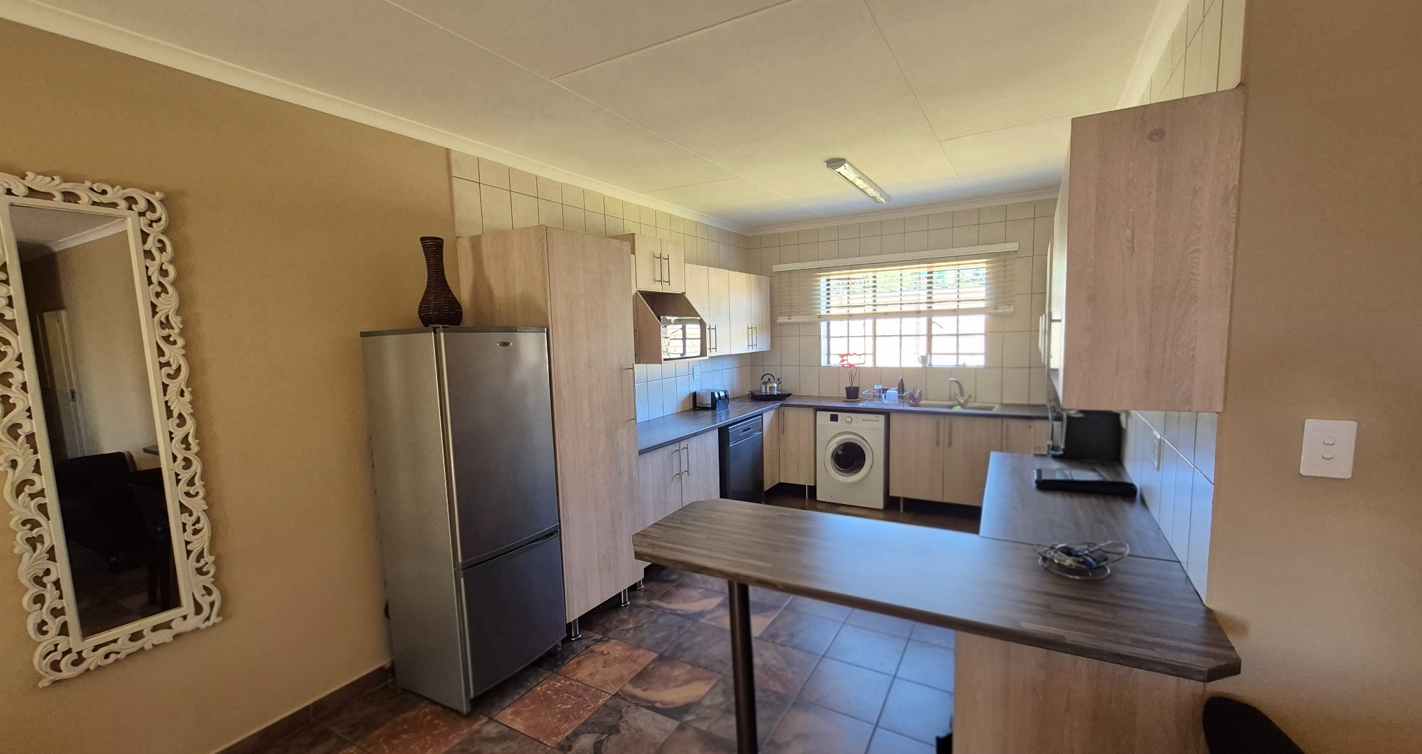 This distinguished rental property is ideally suited for discerning individuals or a small family seeking an elevated lifestyle in Bredell. Residing within a secure gated community, residents benefit from enhanced peace of mind, further bolstered by a totally walled perimeter, access gates, security gates, and burglar bars. Embrace modern connectivity with fibre internet readily available. The property also champions sustainability with its own borehole and water tanks, ensuring a reliable water supply. Pets are welcome in this sophisticated country living haven.