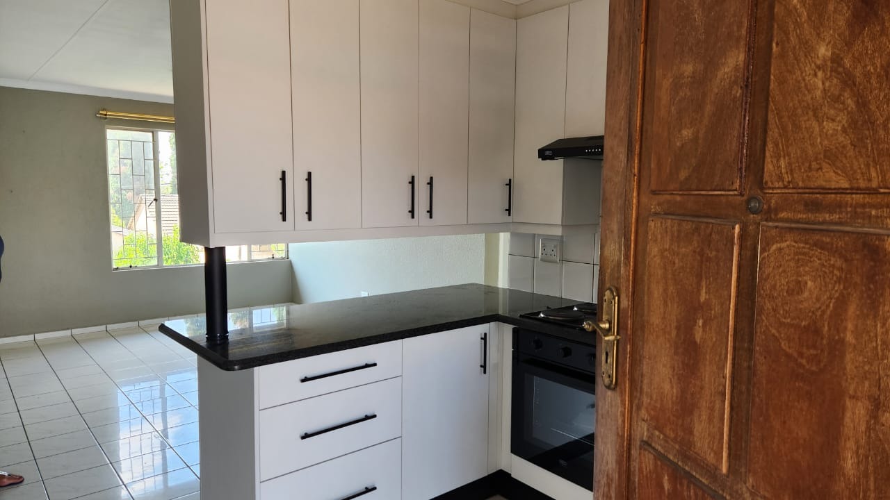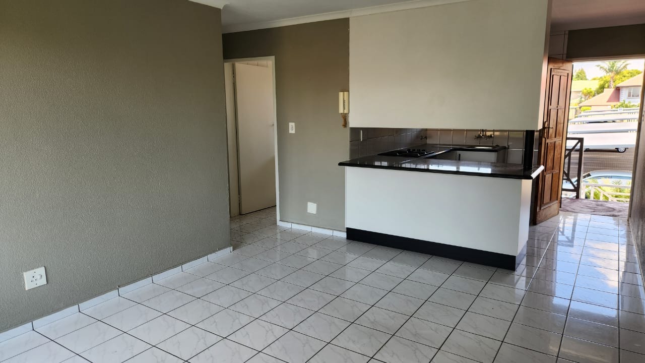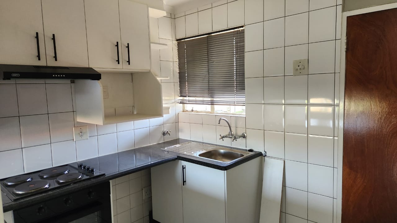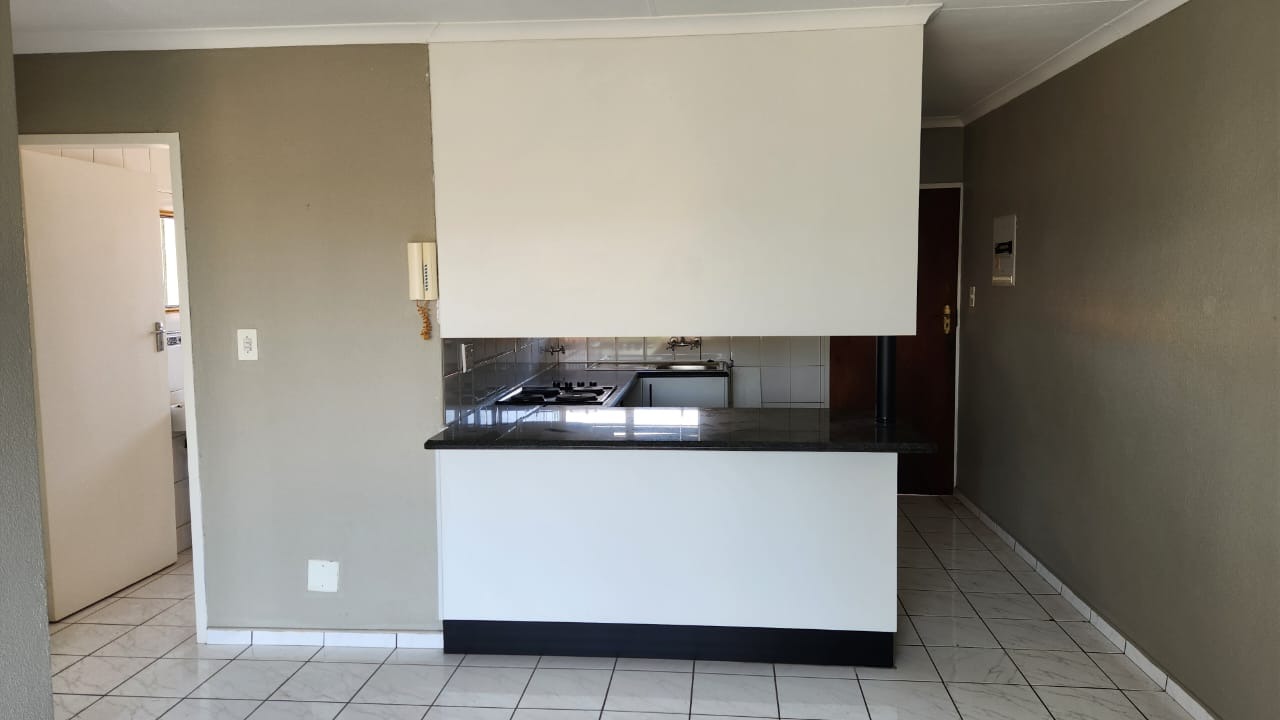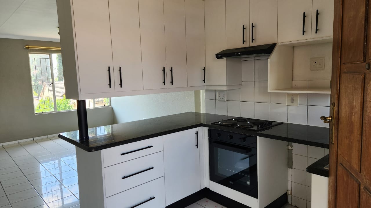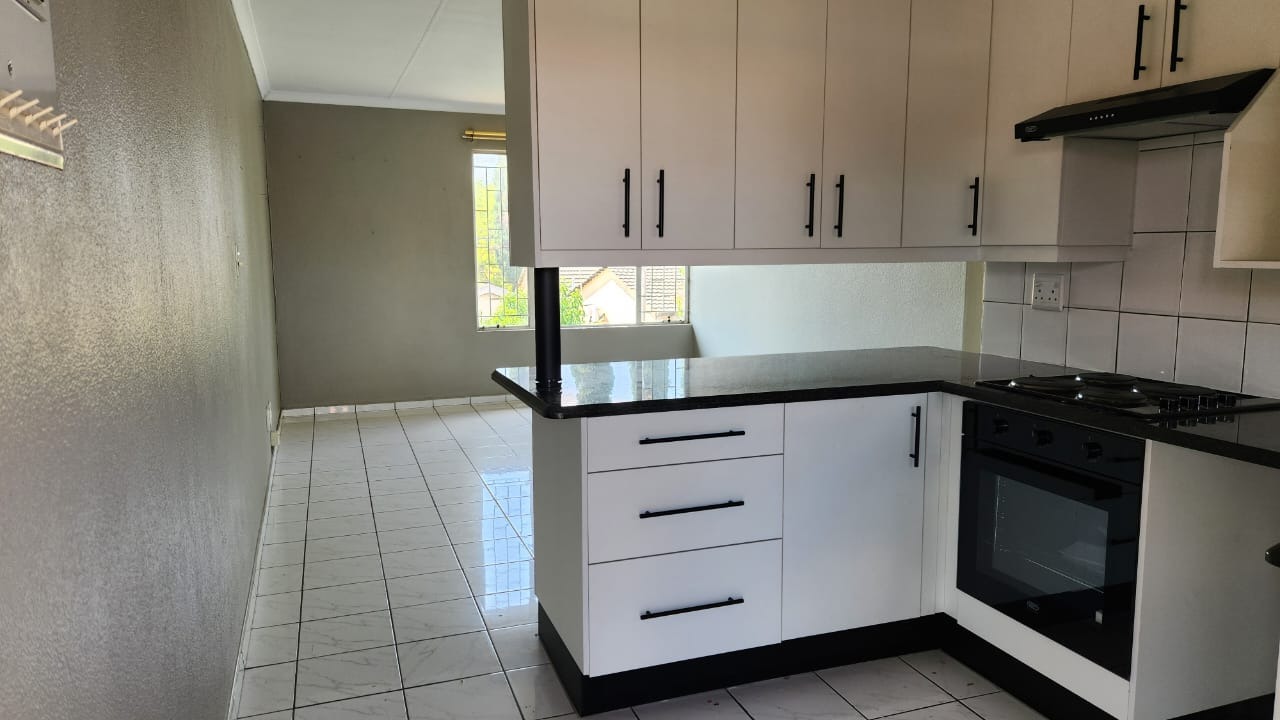 Discover this modern 1st floor 2-bedroom, 1-bathroom apartment available for rent in the desirable Glen Marais suburb of Kempton Park, South Africa. Spanning 49.00 sqm, this well-appointed unit features a contemporary open-plan layout designed for comfortable living. The heart of the home is its stylish kitchen, boasting sleek white cabinetry, dark countertops, and integrated appliances including a built-in oven, hob, and extractor fan. A convenient breakfast bar enhances the functional space, perfect for casual dining or entertaining.