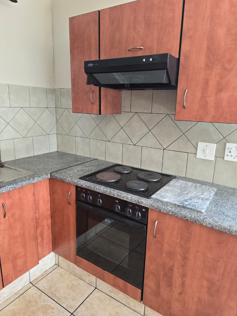 Discover this inviting 2-bedroom, 1-bathroom residential rental property, offering a comfortable and secure living environment in Norkem Park. The interior boasts an open-plan layout, seamlessly connecting the lounge, dining area, and kitchen, creating a spacious feel. Tiled flooring throughout ensures easy maintenance, while neutral wall colours provide a versatile canvas for personal decor. The well-appointed kitchen features ample wood-toned cabinetry, granite-look countertops, an integrated oven and hob, and a practical breakfast bar, ideal for daily meals and entertaining. Natural light floods the living areas, enhanced by a large window and a sliding glass door with outdoor access. Exposed brick accents add a touch of character to the design. This property is designed for a convenient lifestyle, accommodating pets and offering potential for dual living, supported by its generous 942 sqm erf. The outdoor area includes a covered patio, perfect for relaxation, leading to a private backyard with an established tree for shade. An outbuilding offers additional storage or workshop potential. With two dedicated parking spaces, including a carport, residents benefit from practical vehicle accommodation. Security is a paramount feature of this rental home, providing peace of mind. Robust measures include a securely gated entrance, spiked perimeter walls, and burglar bars on windows and the sliding door, with an additional security gate for enhanced safety. The property is also equipped with fibre connectivity, catering to modern communication needs. Located in Norkem Park, Kempton Park, this property offers convenient access to local amenities, schools, and major transport routes. It provides a practical and well-connected rental option in a vibrant South African community. Key Features: * 2 Bedrooms, 1 Bathroom * Open-plan lounge, dining, and kitchen * Integrated oven and hob with breakfast bar * Tiled flooring throughout * Covered patio and private backyard * Two parking spaces (carport) * Robust security features (gated, bars, spiked walls) * Fibre connectivity * Pets allowed * Outbuilding for storage/workshop