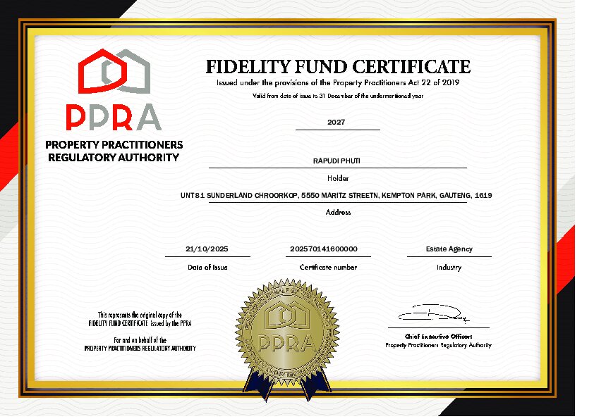 About Phuti Rapudi Title: Candidate Property Practitioner Registered with the PPRA FFC Number: 1276028
